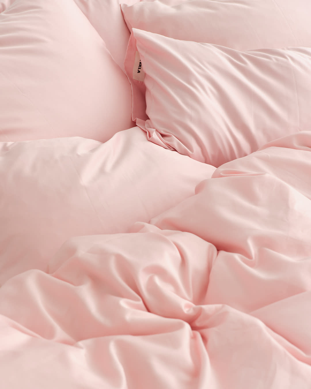 Sateen bedding in Blushing Pink. Pearlescent tones emphasise the sheen of lustrous bedding.