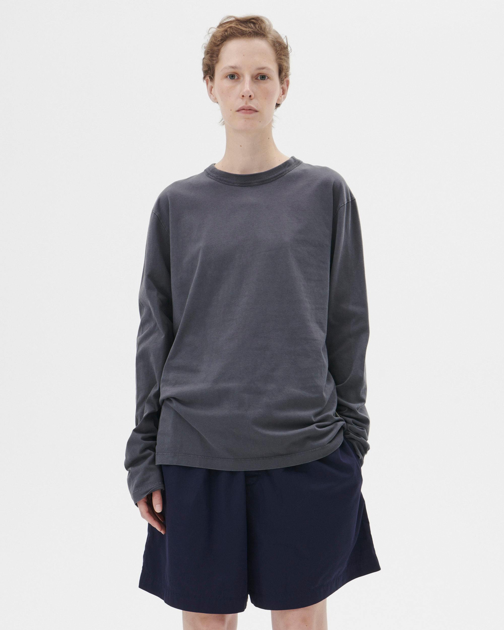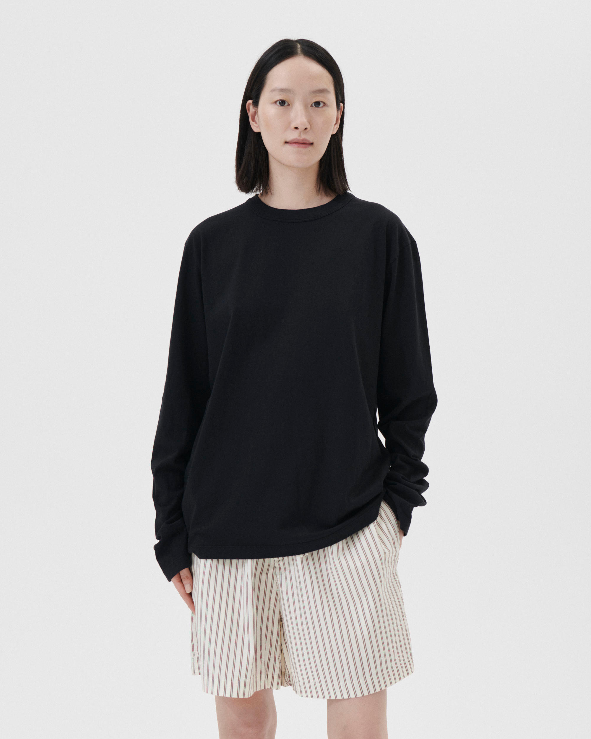 The long-sleeved t-shirt is designed for moments of comfort throughout the day and night. Cut with a relaxed, straight fit and suited for sleep or layering under sleepwear shirts. Made from 100% organic cotton in a medium-heavyweight jersey knit with an easy drape and smooth finish.
