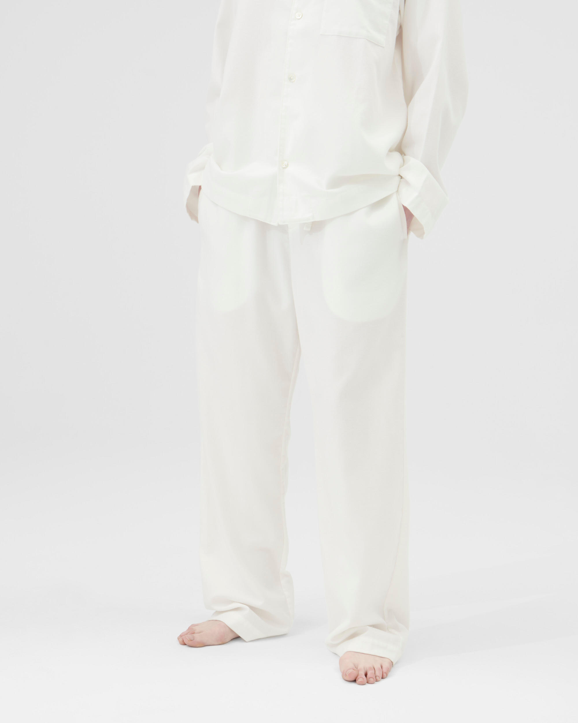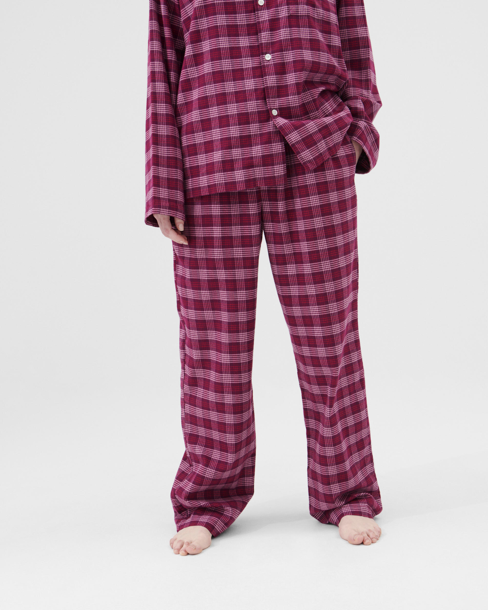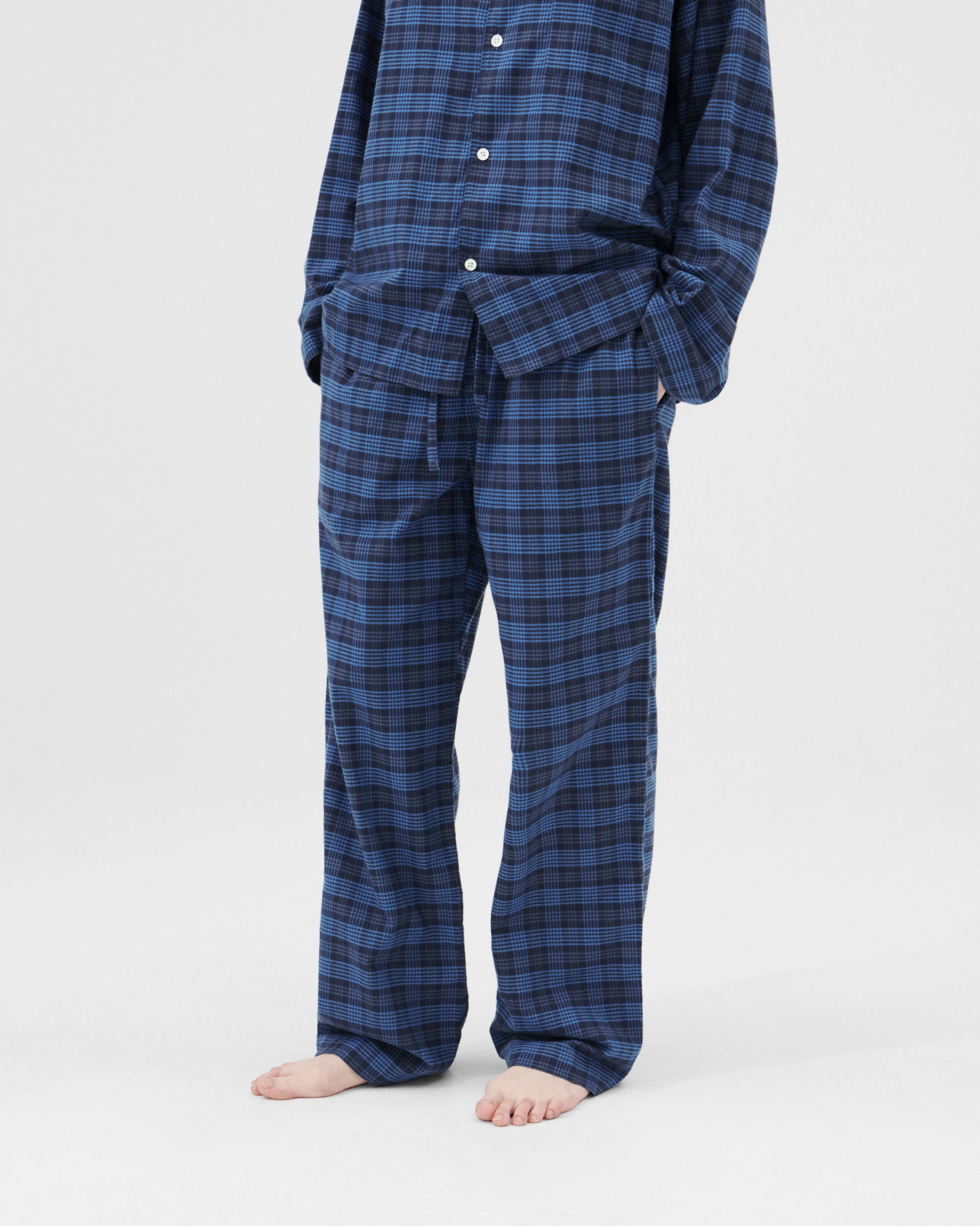 The flannel pants are designed for moments of comfort throughout the day and night. Made using 100% organic cotton in a medium-weight 148 GSM that’s brushed on both sides for softness, with a strong and open twill weave that drapes gently over the body.