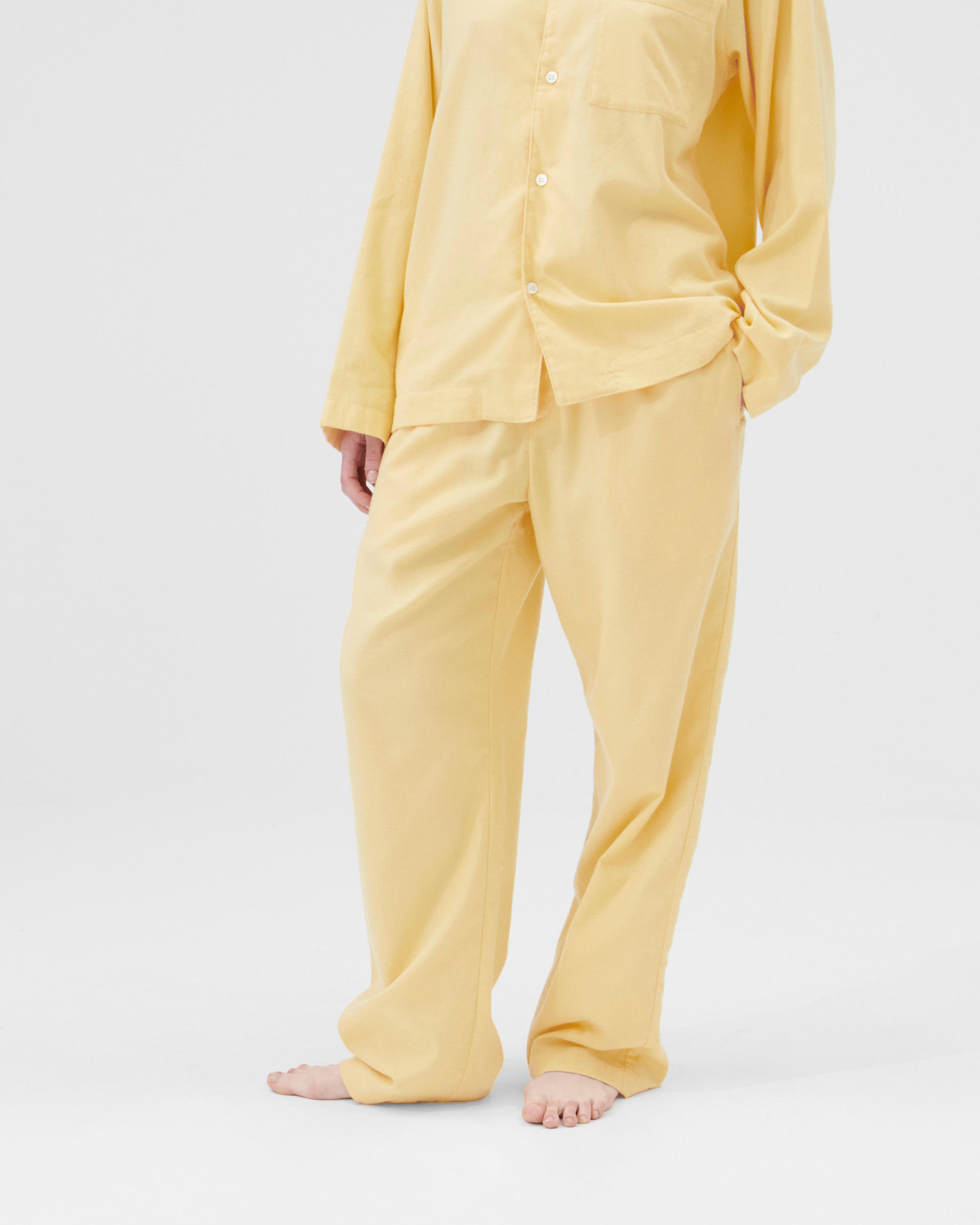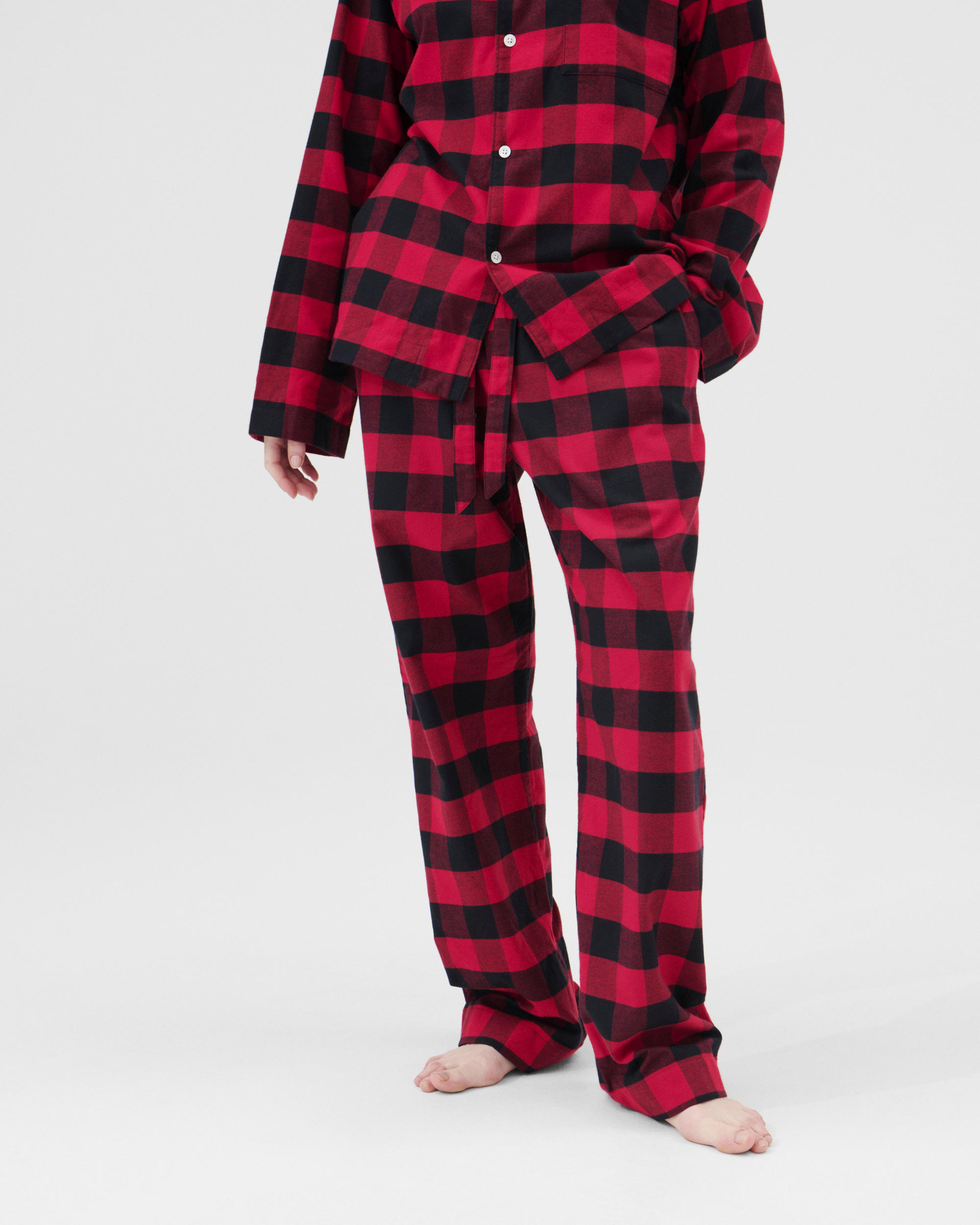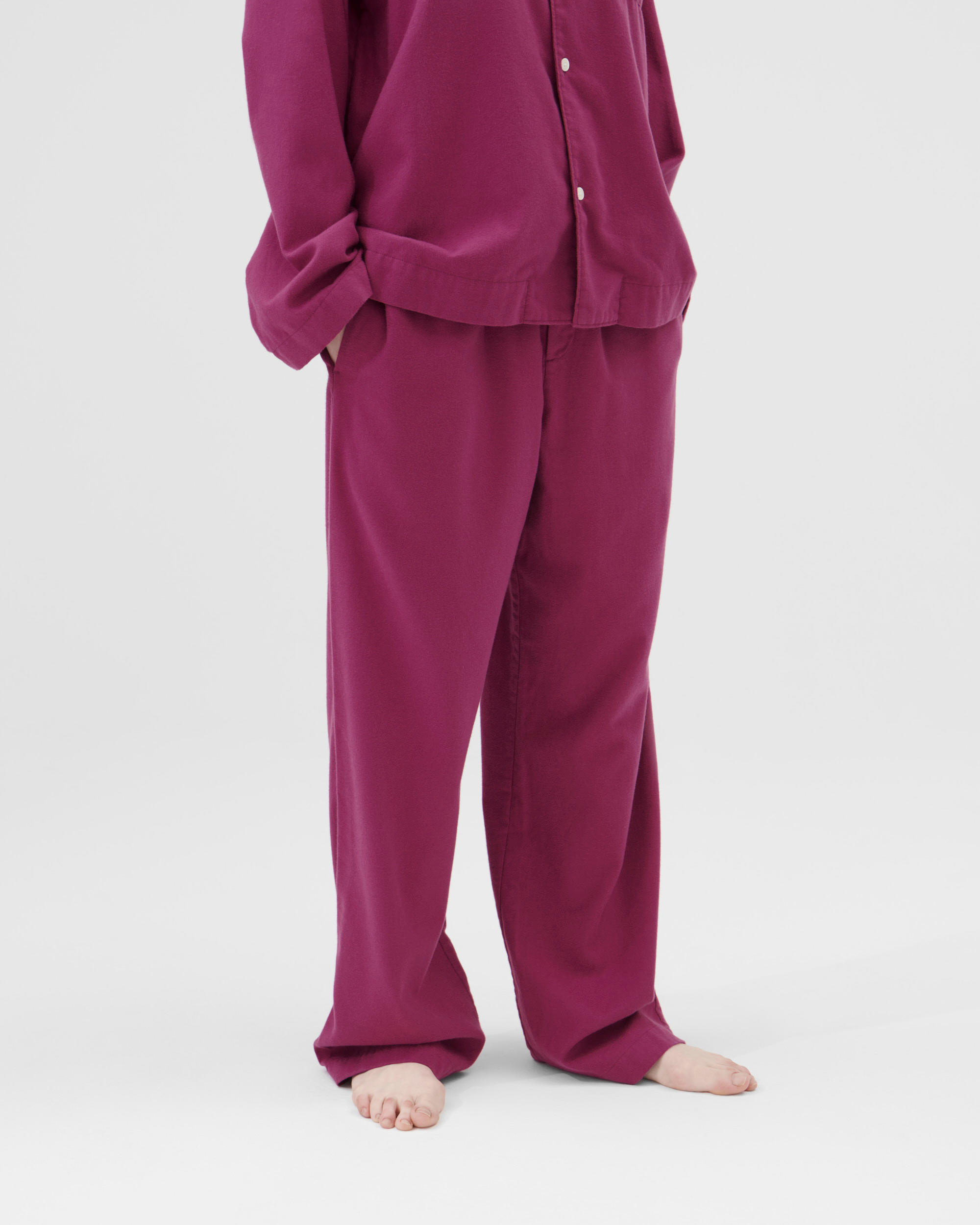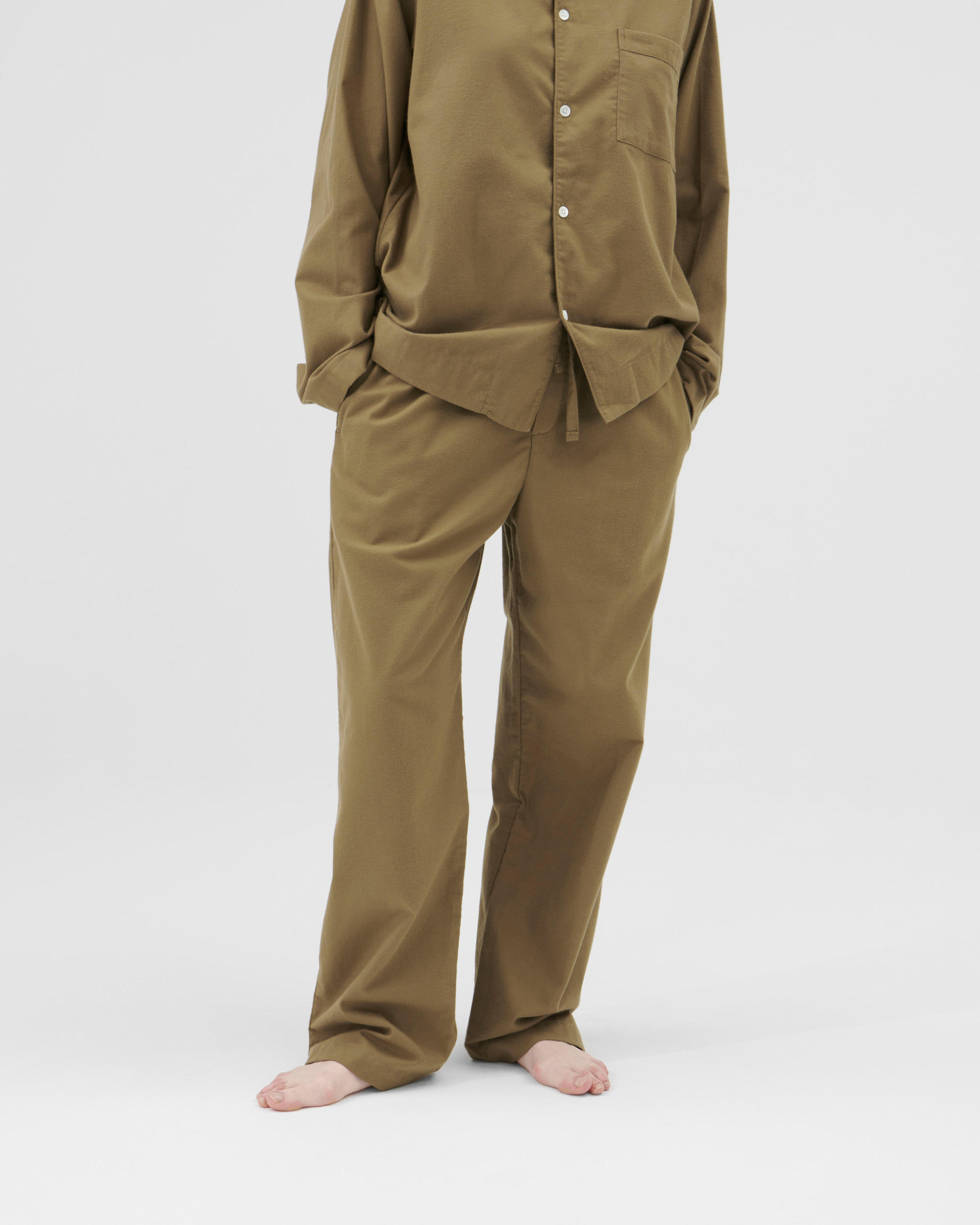 The flannel pants are designed for moments of comfort throughout the day and night. Made using 100% organic cotton in a medium-weight 148 GSM that’s brushed on both sides for softness, with a strong and open twill weave that drapes gently over the body.