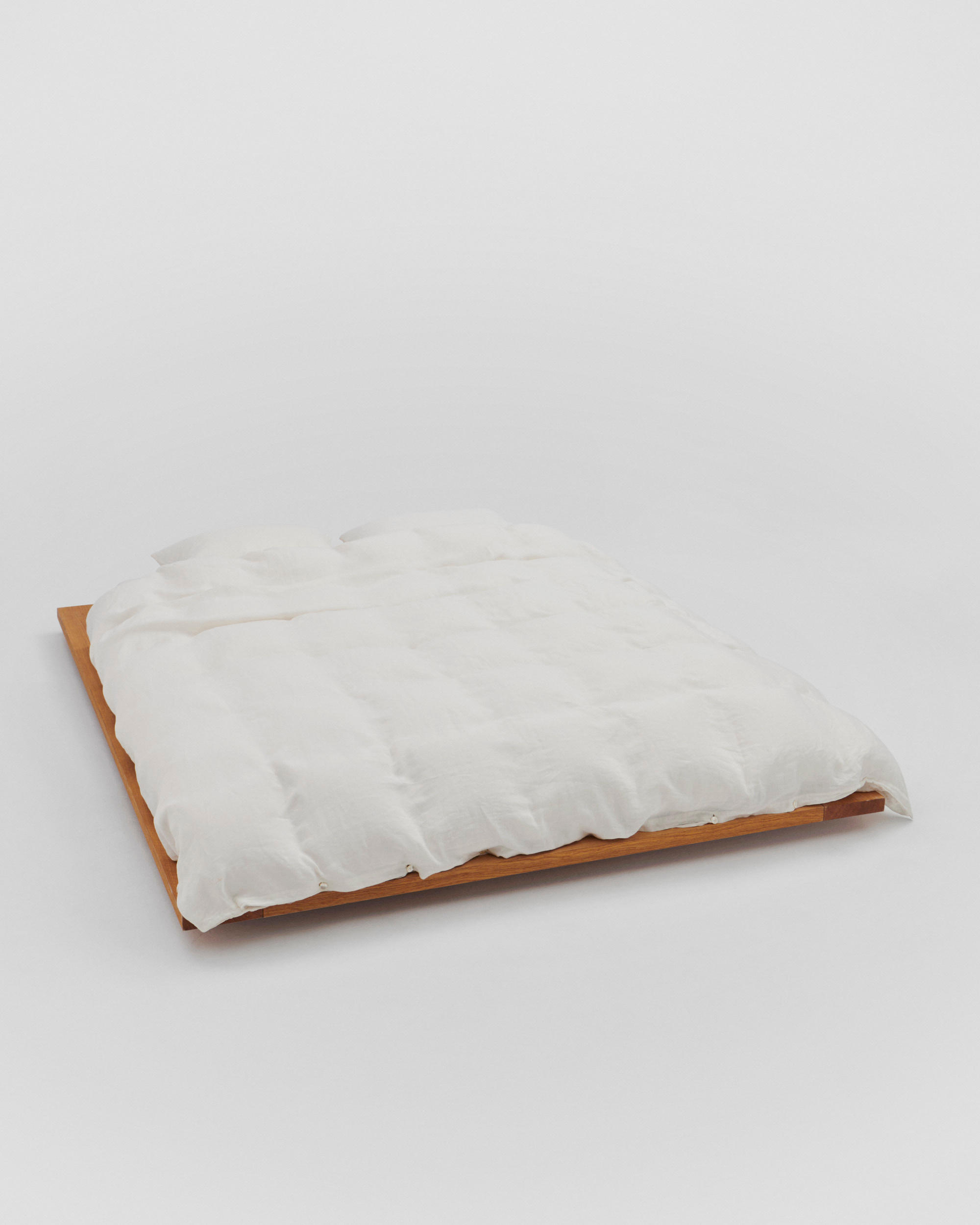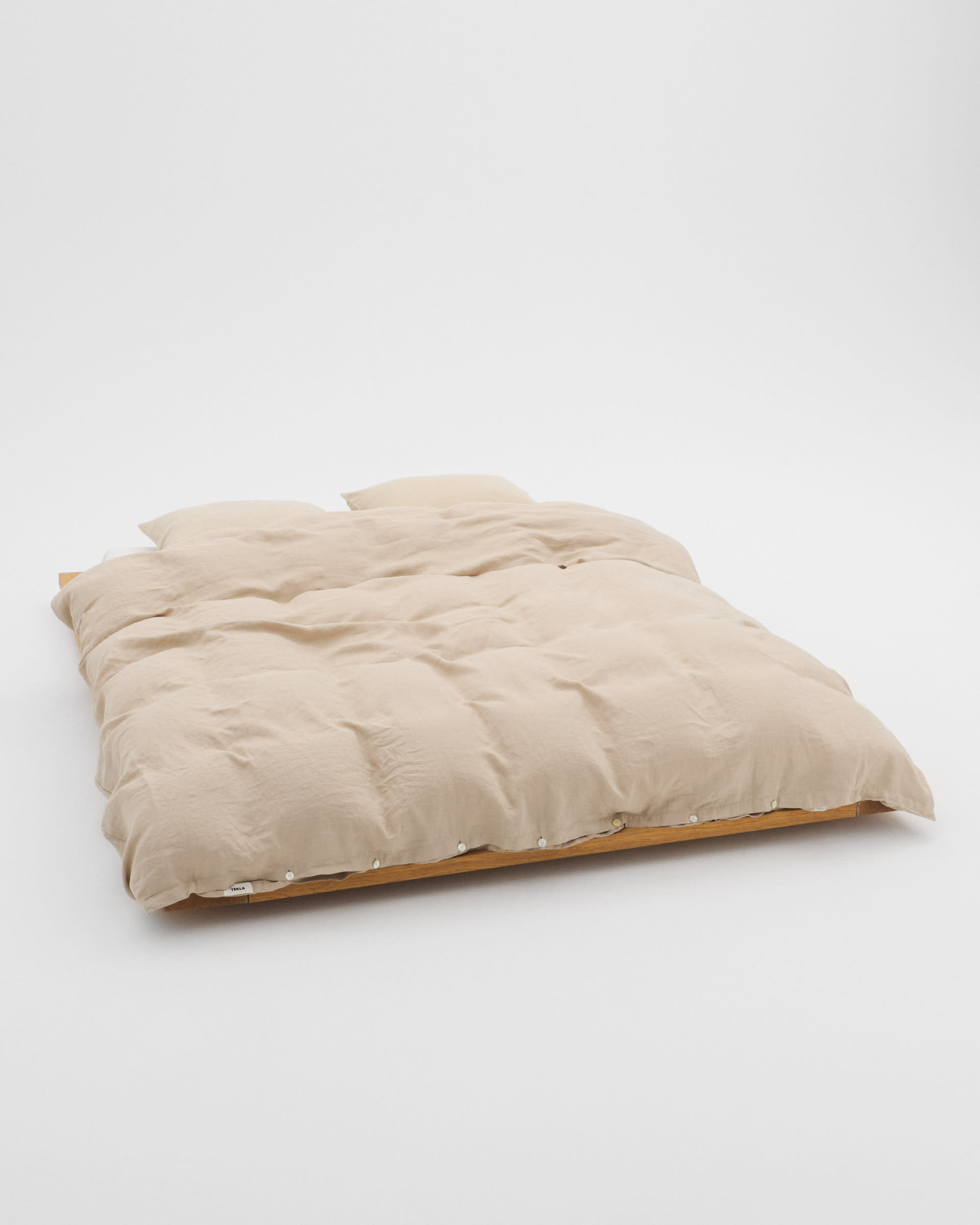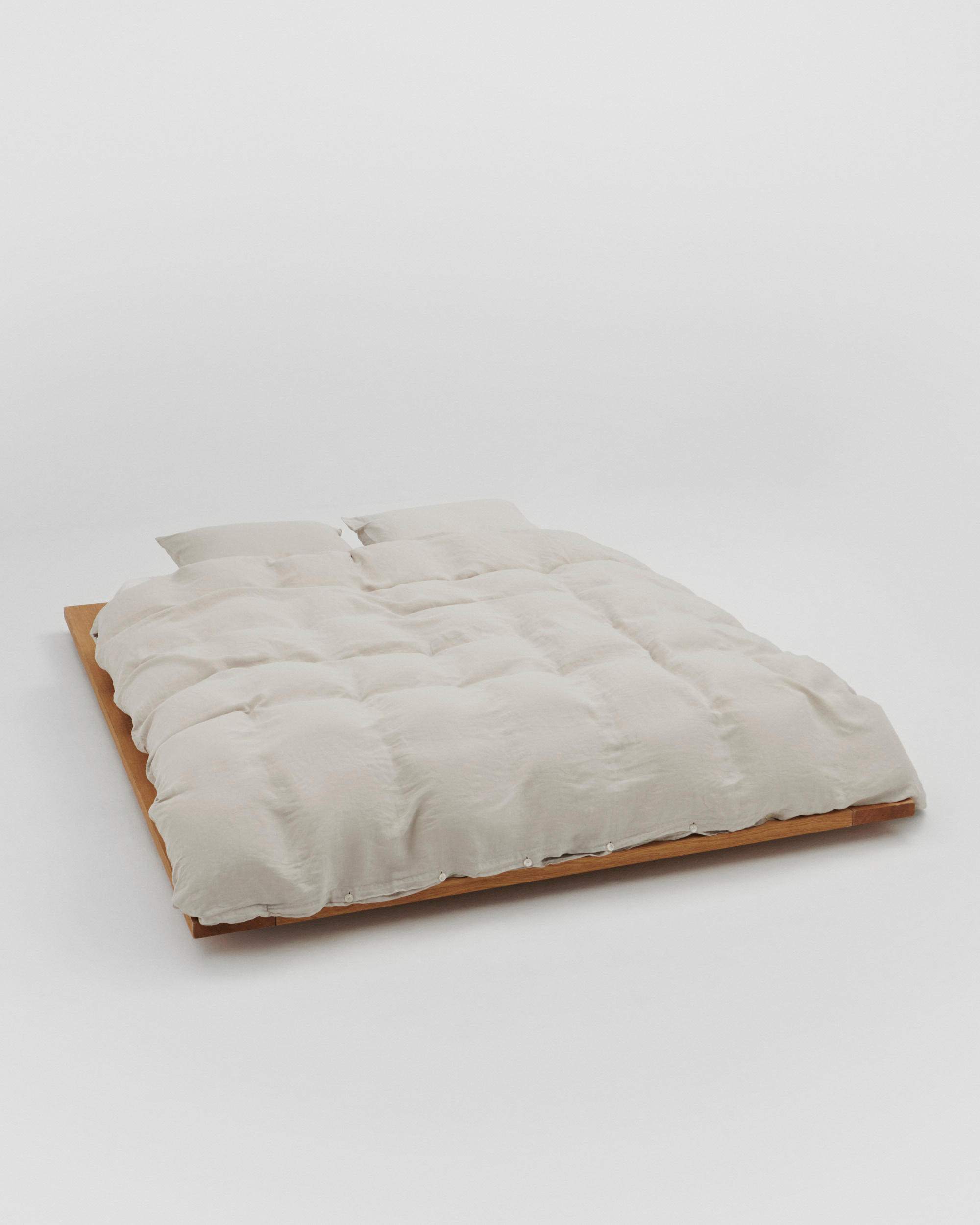 The linen duvet cover offers a more intimate experience when sleeping, as the 180 GSM open-weave fabric balances breathability with a comforting weight. Linen is particularly suited for the warmer months because the fibre is cool to the touch, but can easily be combined with blankets in winter for extra warmth.