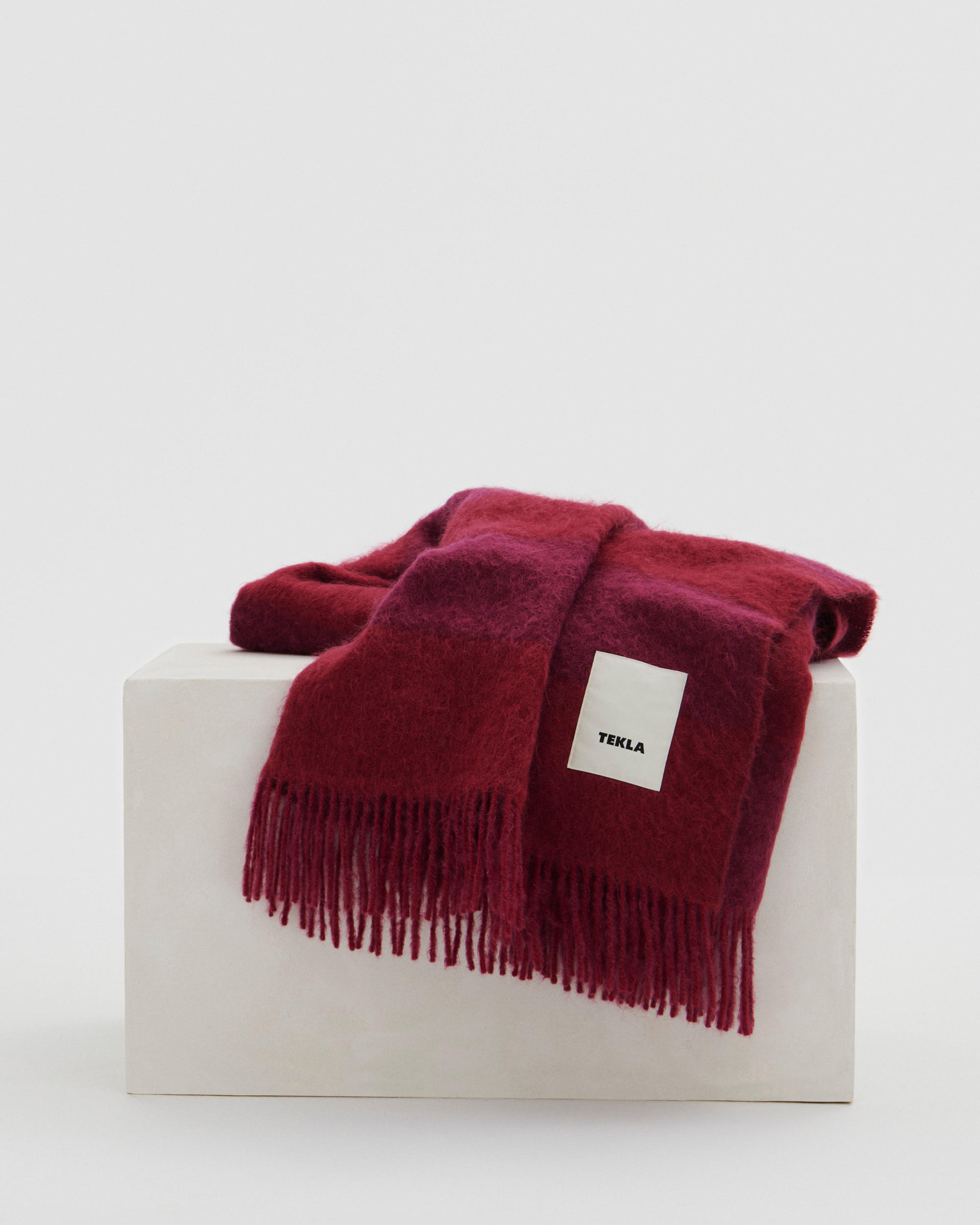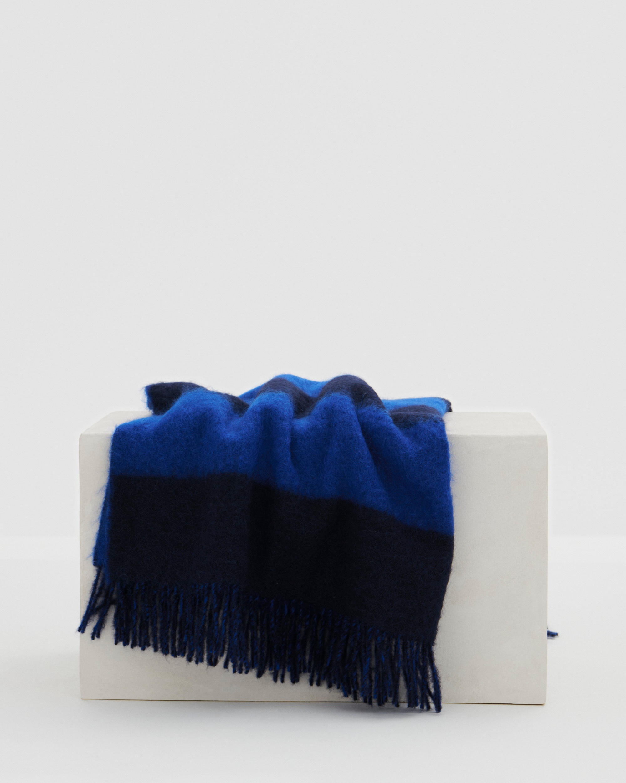 Our Mohair Blanket’s blend of 50% mohair and 50% pure wool balances mohair’s unique look without sacrificing durability. Mohair’s natural strength ensures the utmost longevity when properly cared for, while pure wool adds weight and heft to the fabrication. Mohair lends itself to strong colours, while its brushed finish creates nuanced texture and superior softness against the skin.