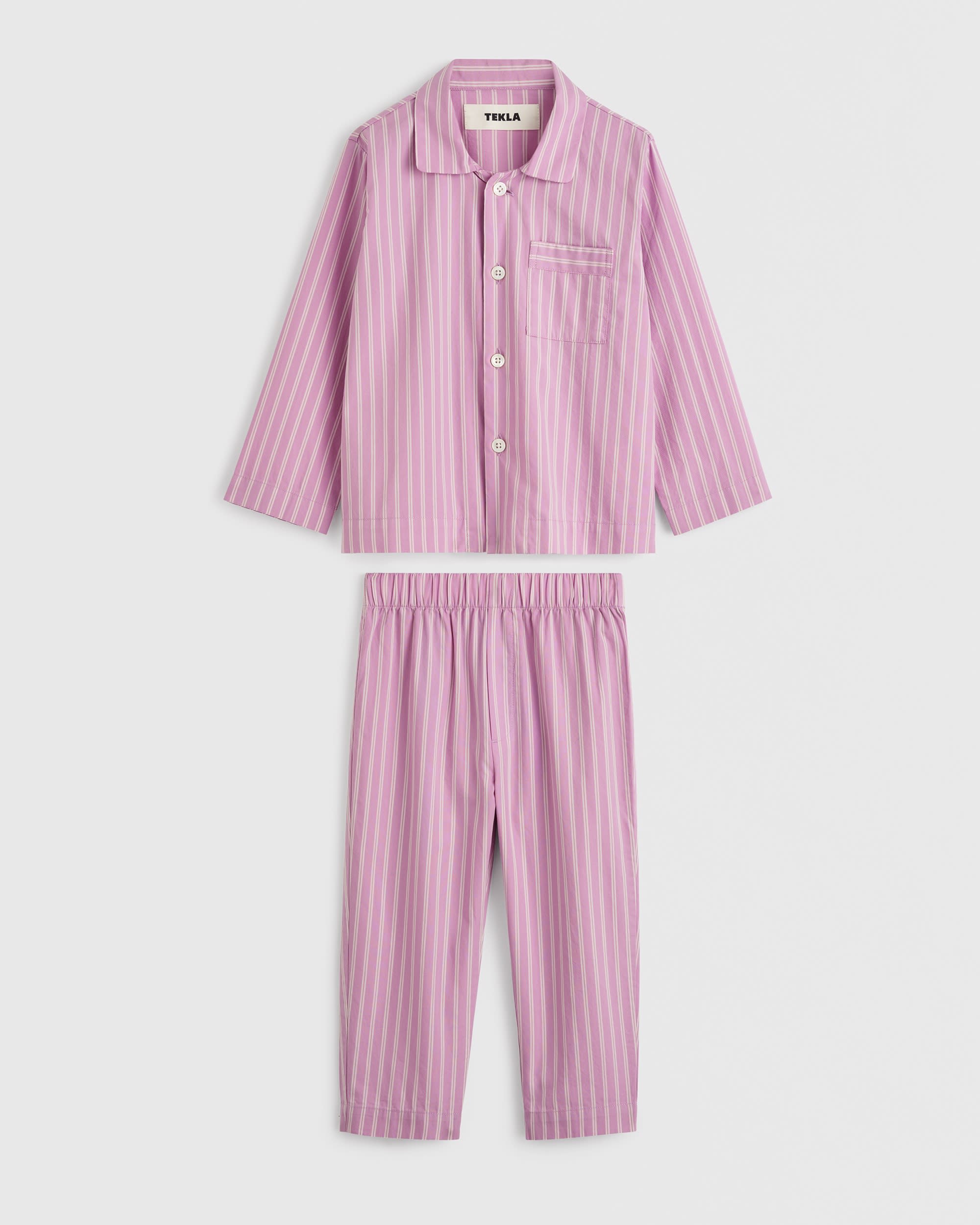 Long-sleeved shirt and pant set. 100% organic cotton in a durable weave. Made in Portugal.