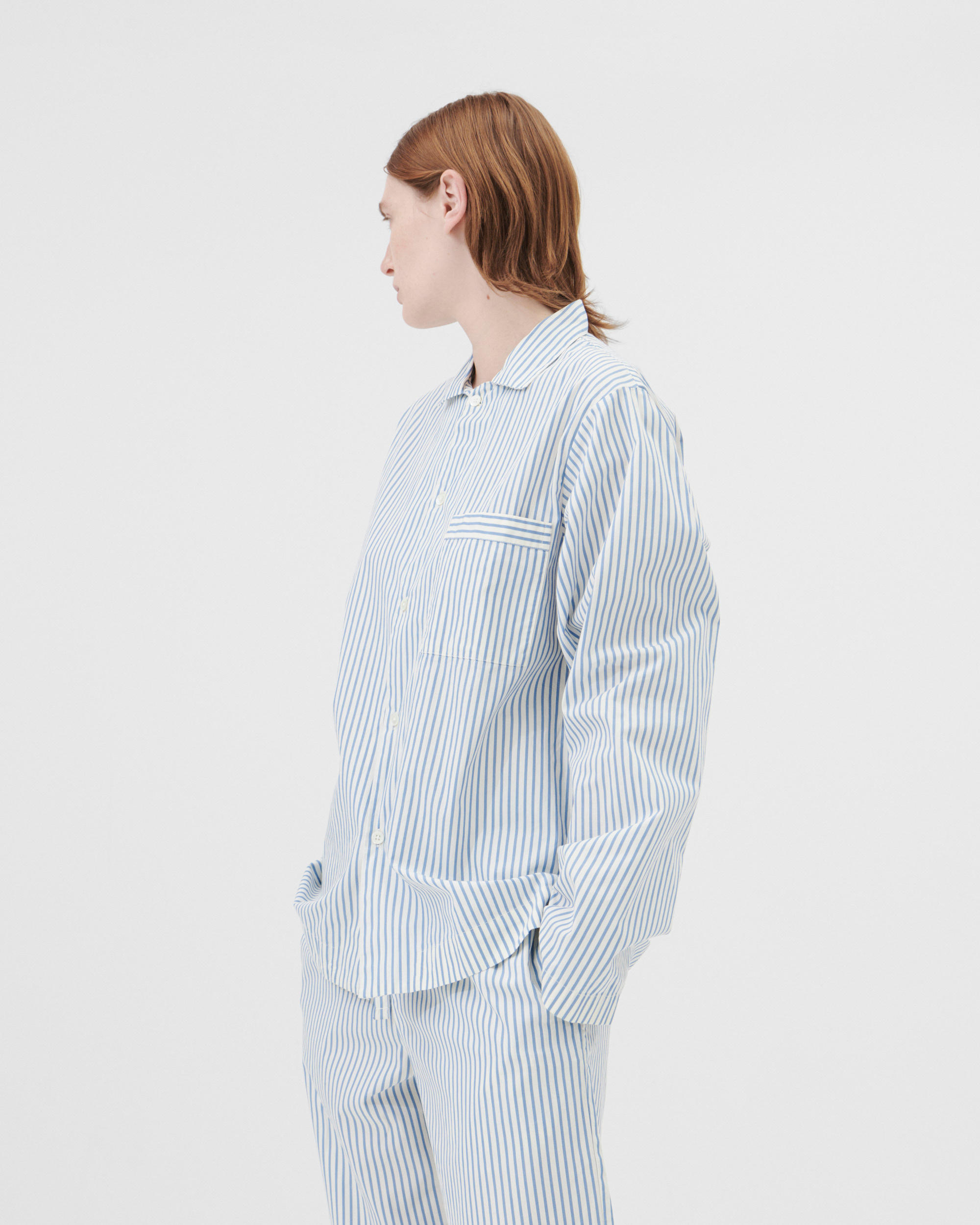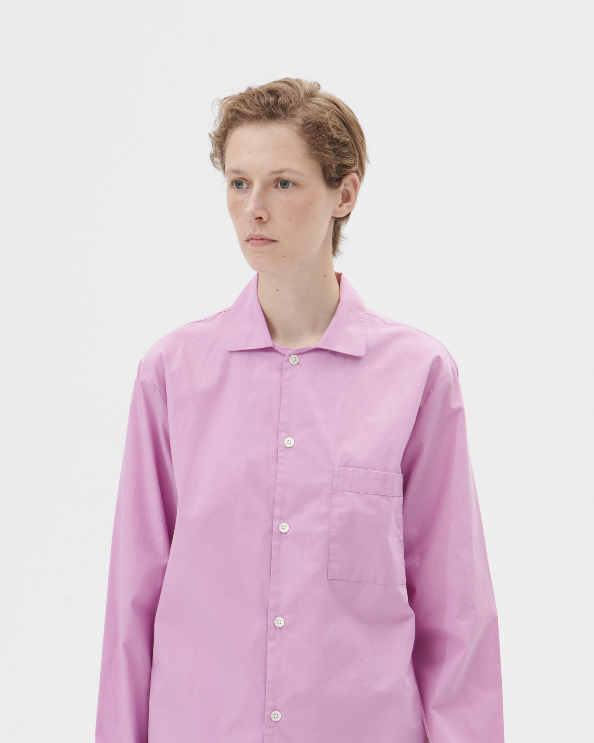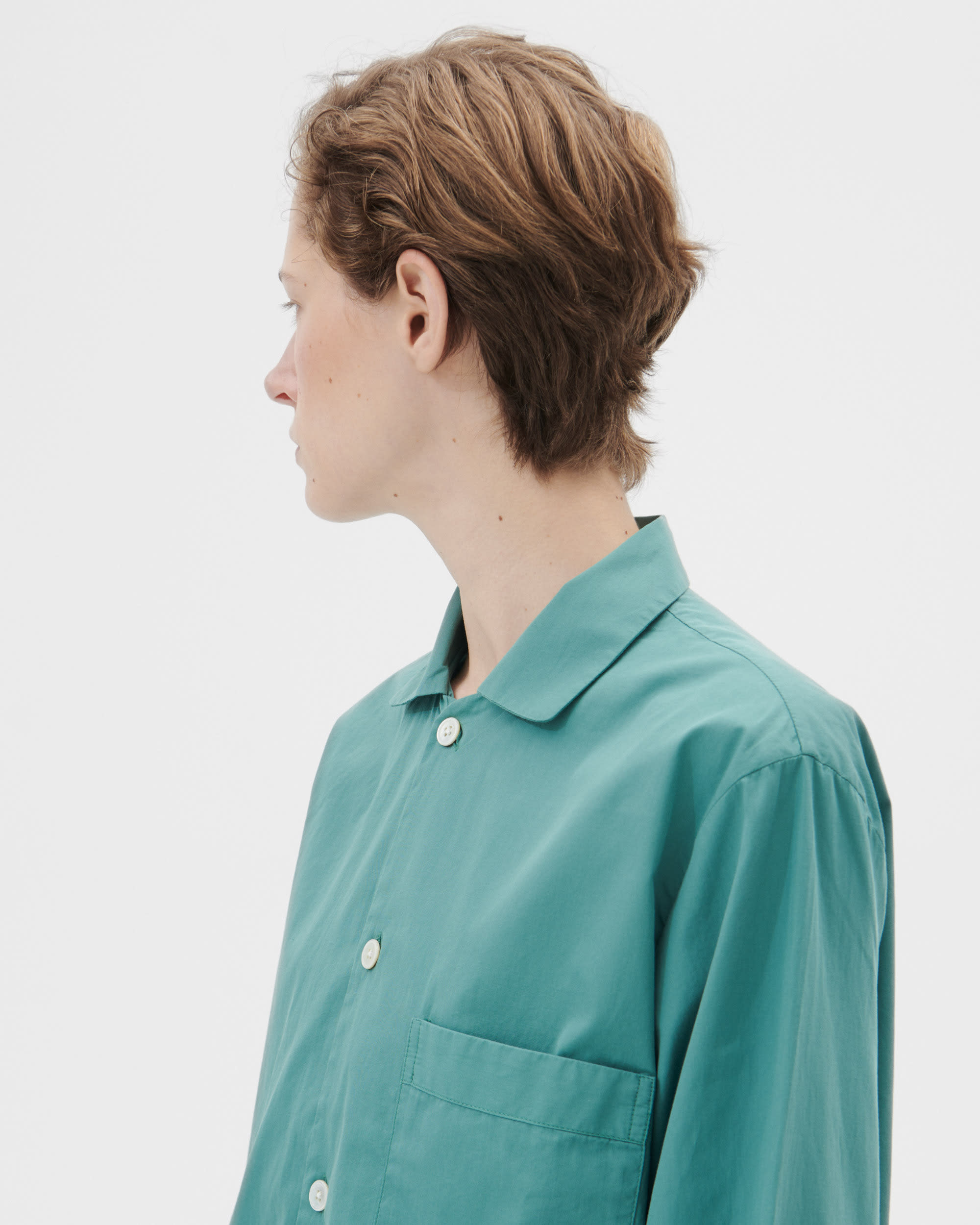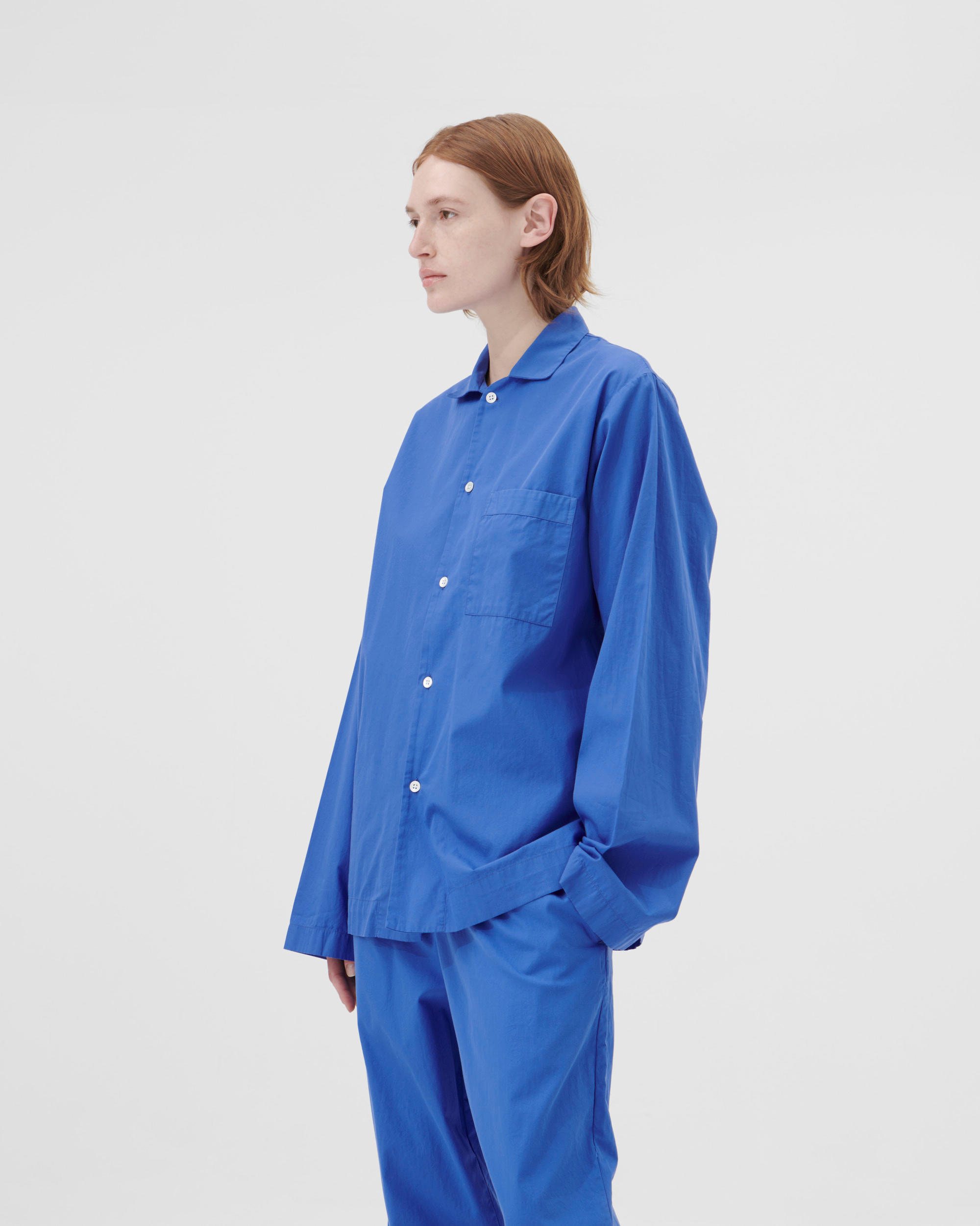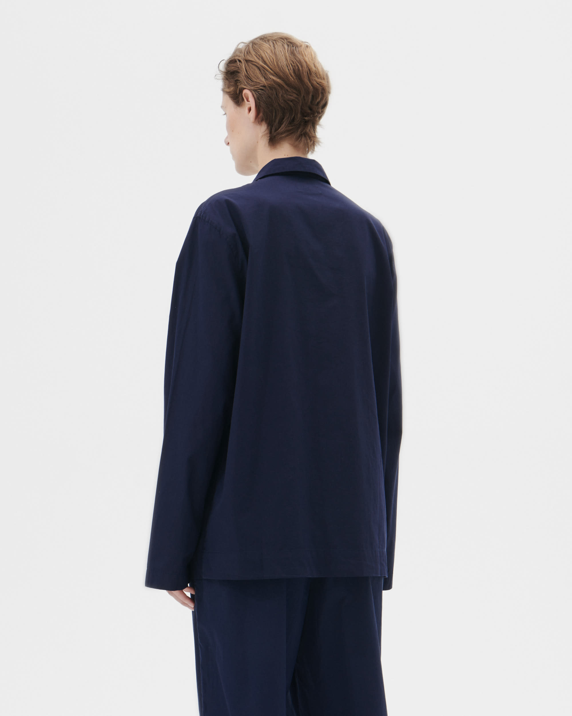 The poplin long-sleeved shirt is designed for moments of comfort throughout the day and night. The fabric is tightly woven for durability and a smooth, even finish, then lightly stonewashed for a soft hand feel. The extra-long yarns used prevent pilling and guarantee a deep, pure colour even after years of use.