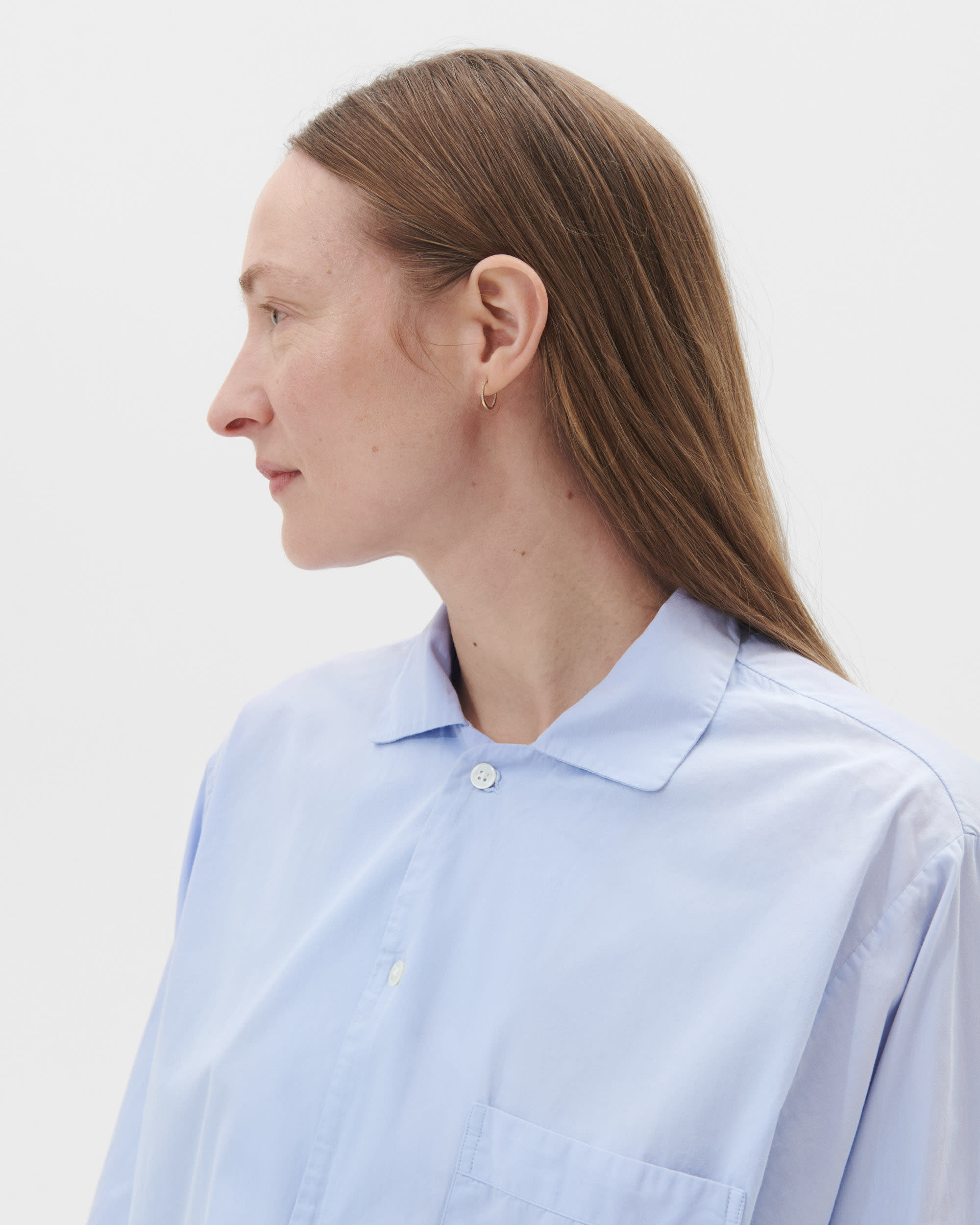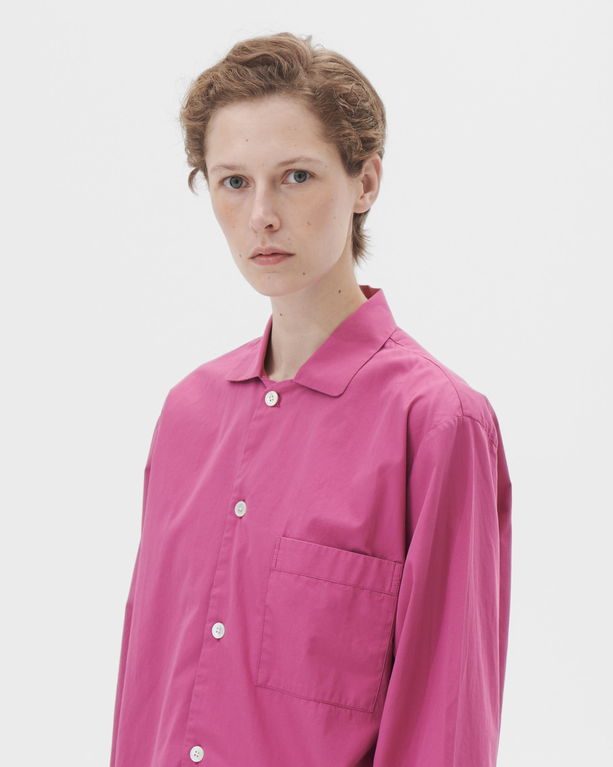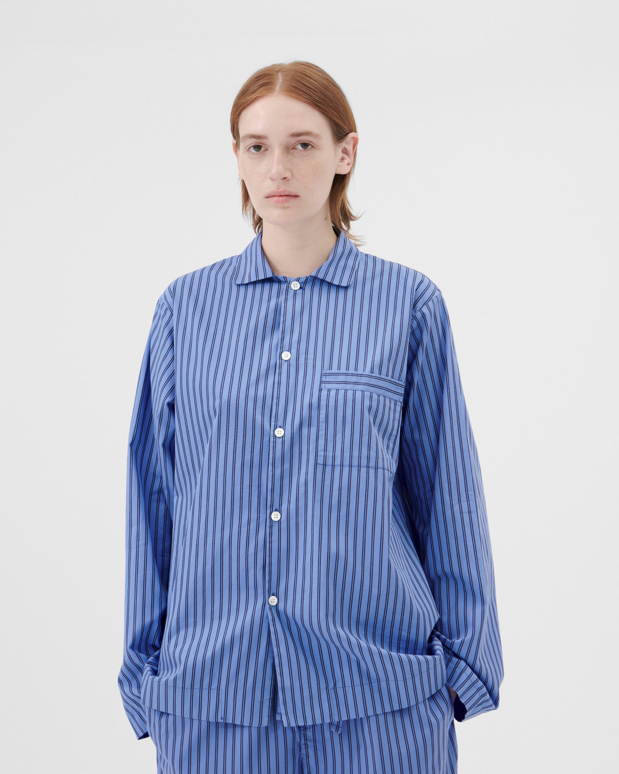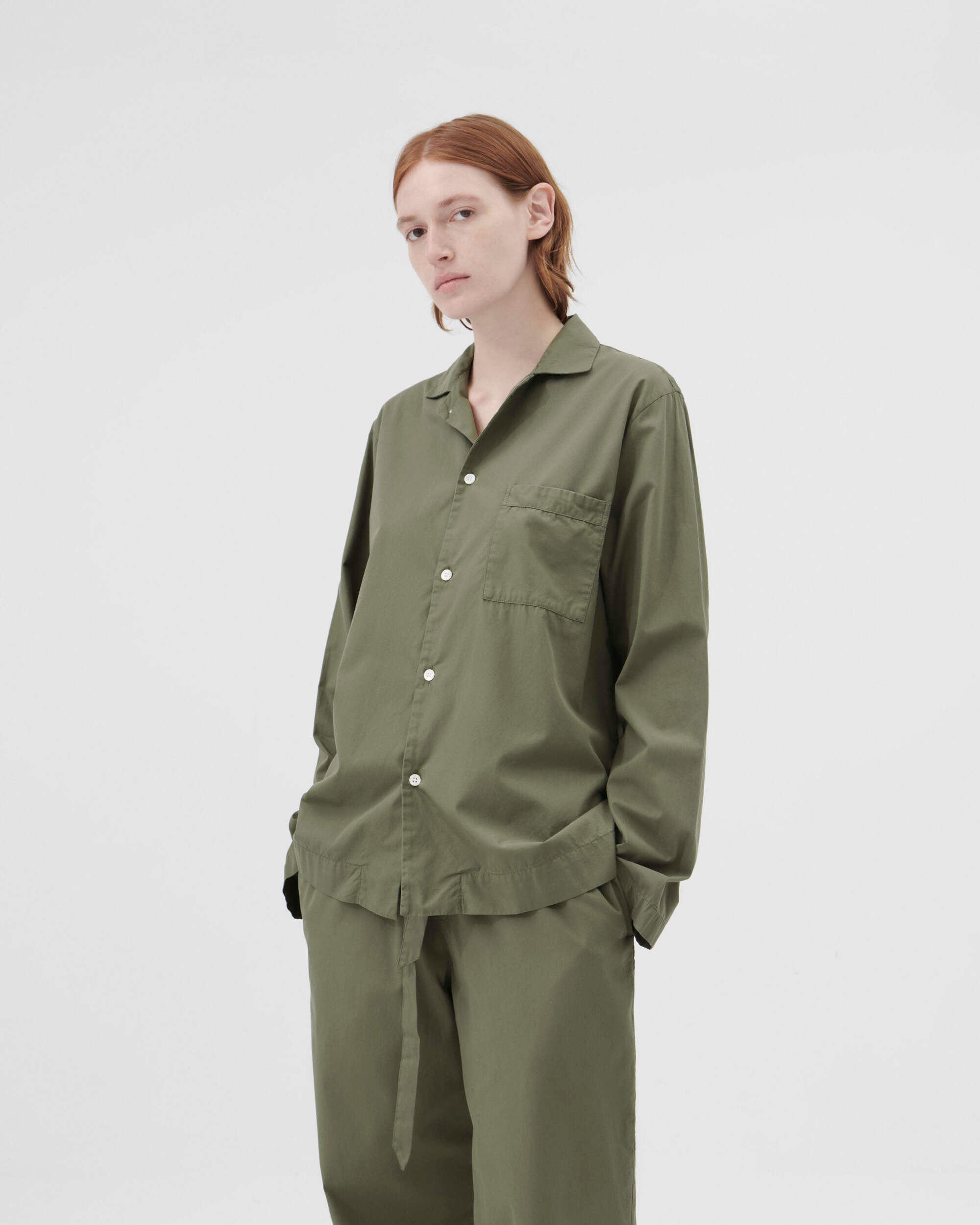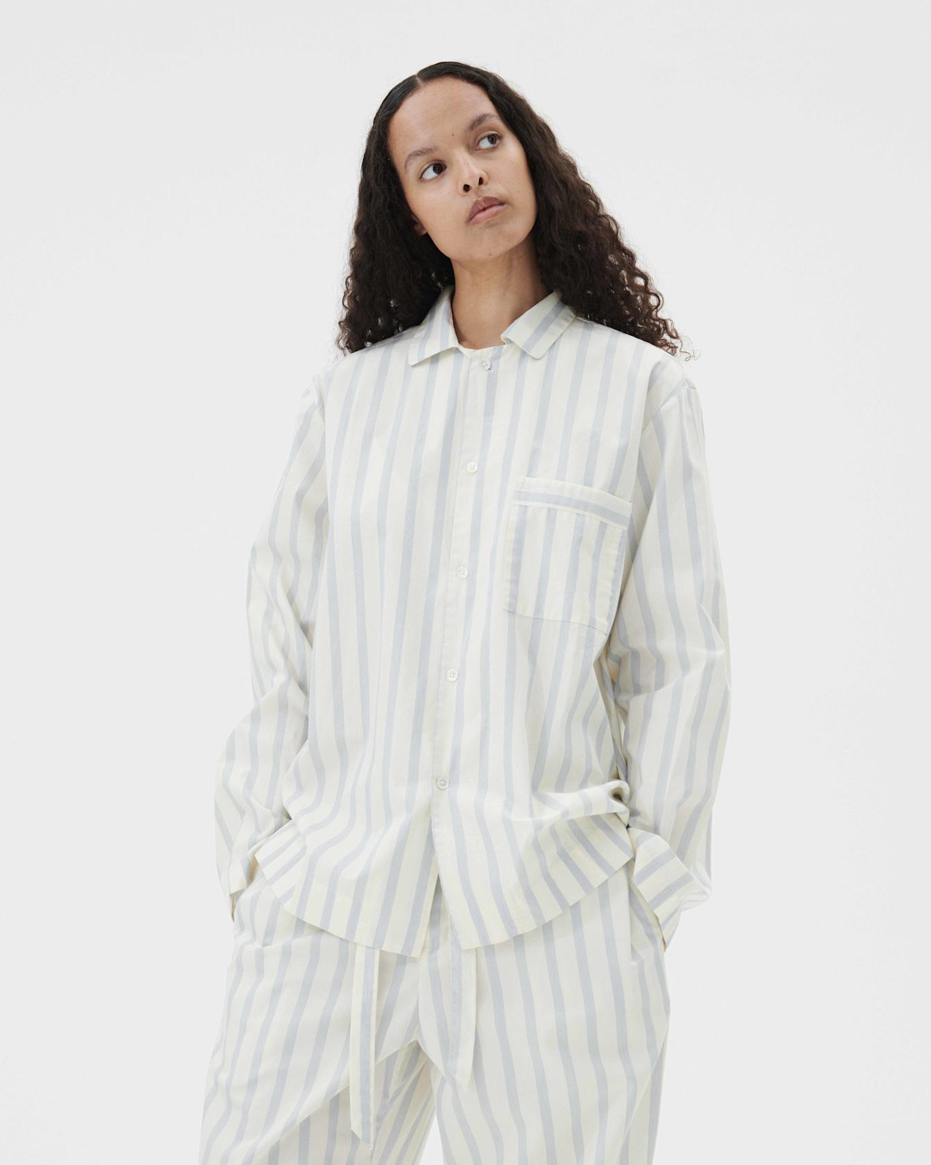 The poplin long-sleeved shirt is designed for moments of comfort throughout the day and night. The fabric is tightly woven for durability and a smooth, even finish, then lightly stonewashed for a soft hand feel. The extra-long yarns used prevent pilling and guarantee a deep, pure colour even after years of use.