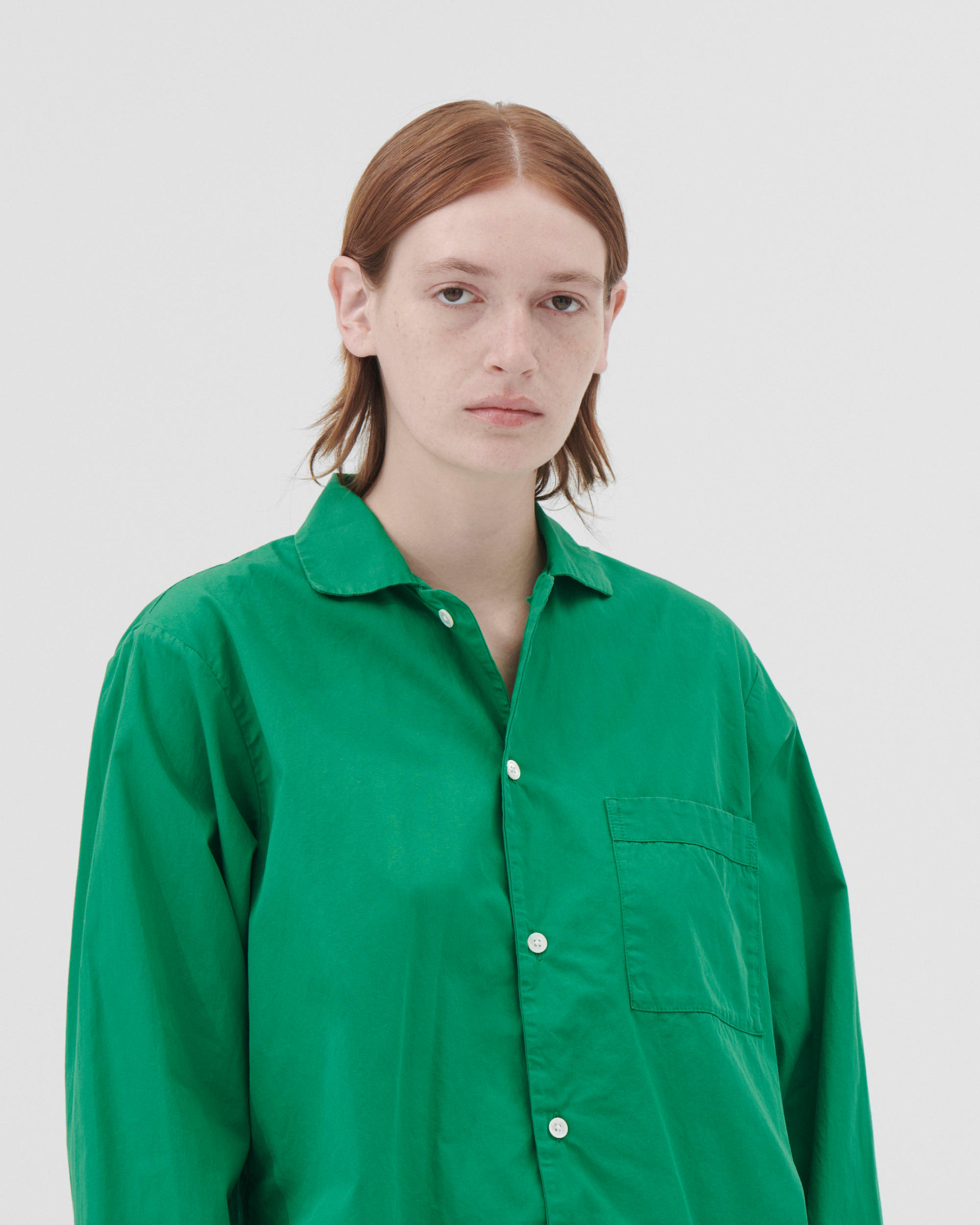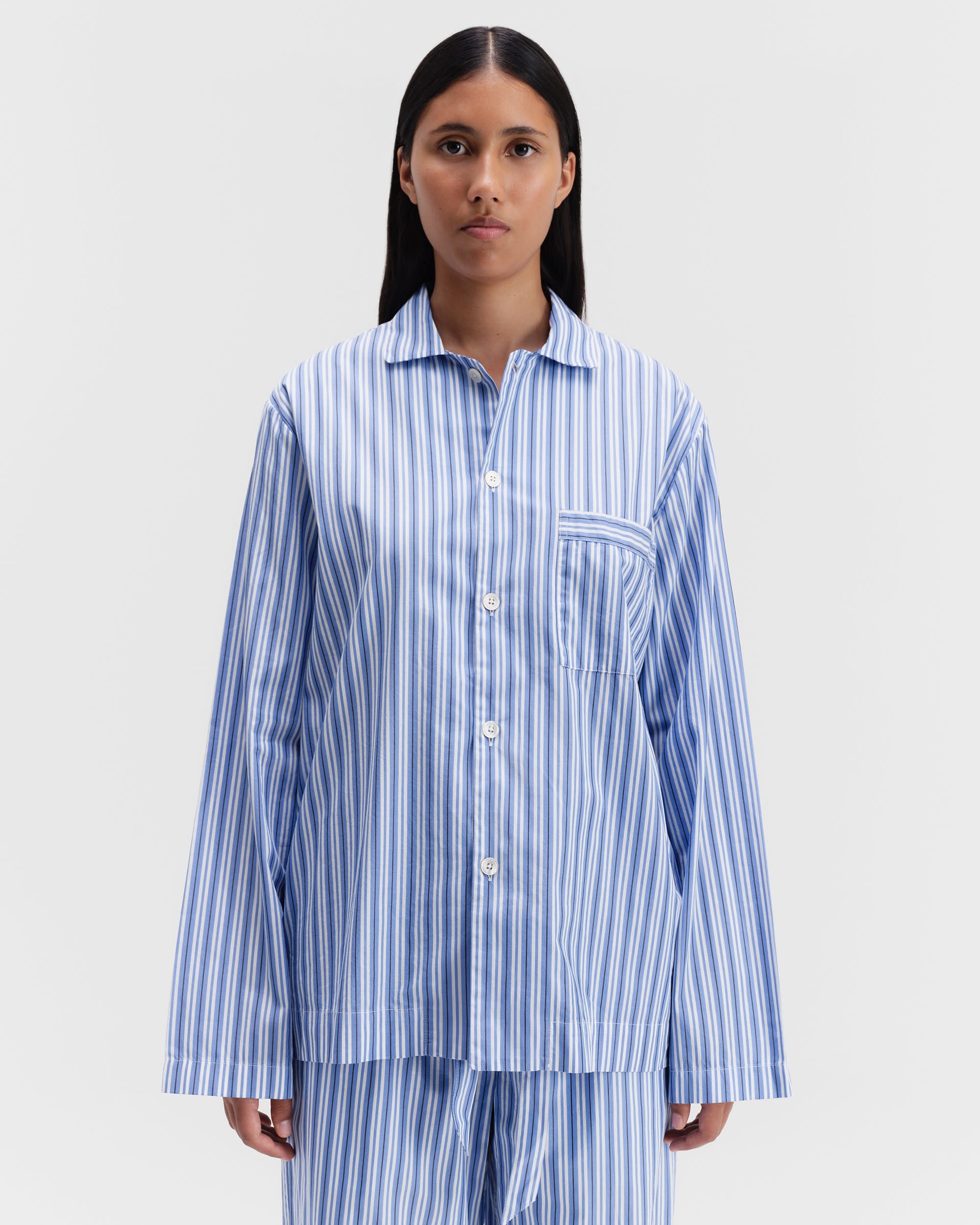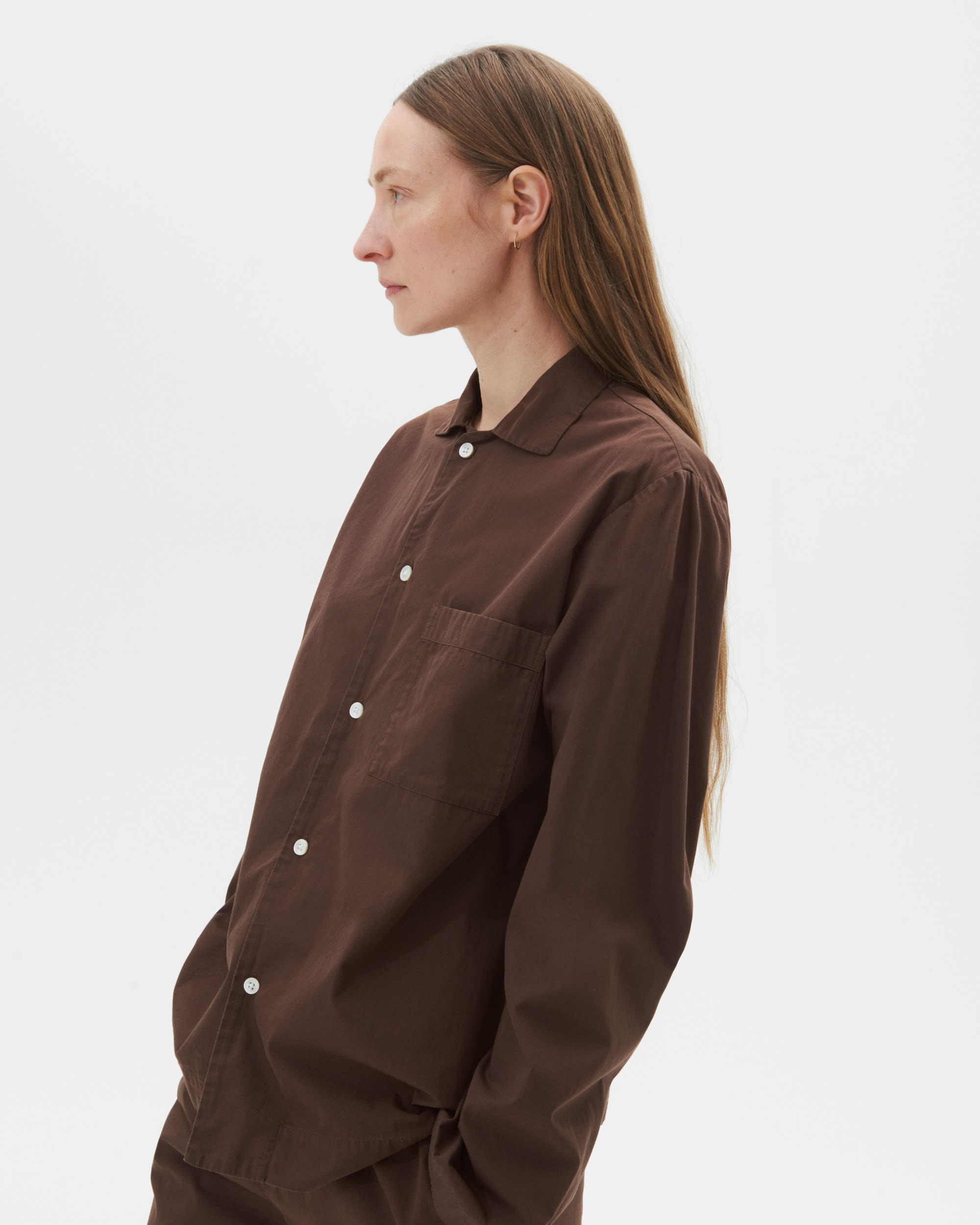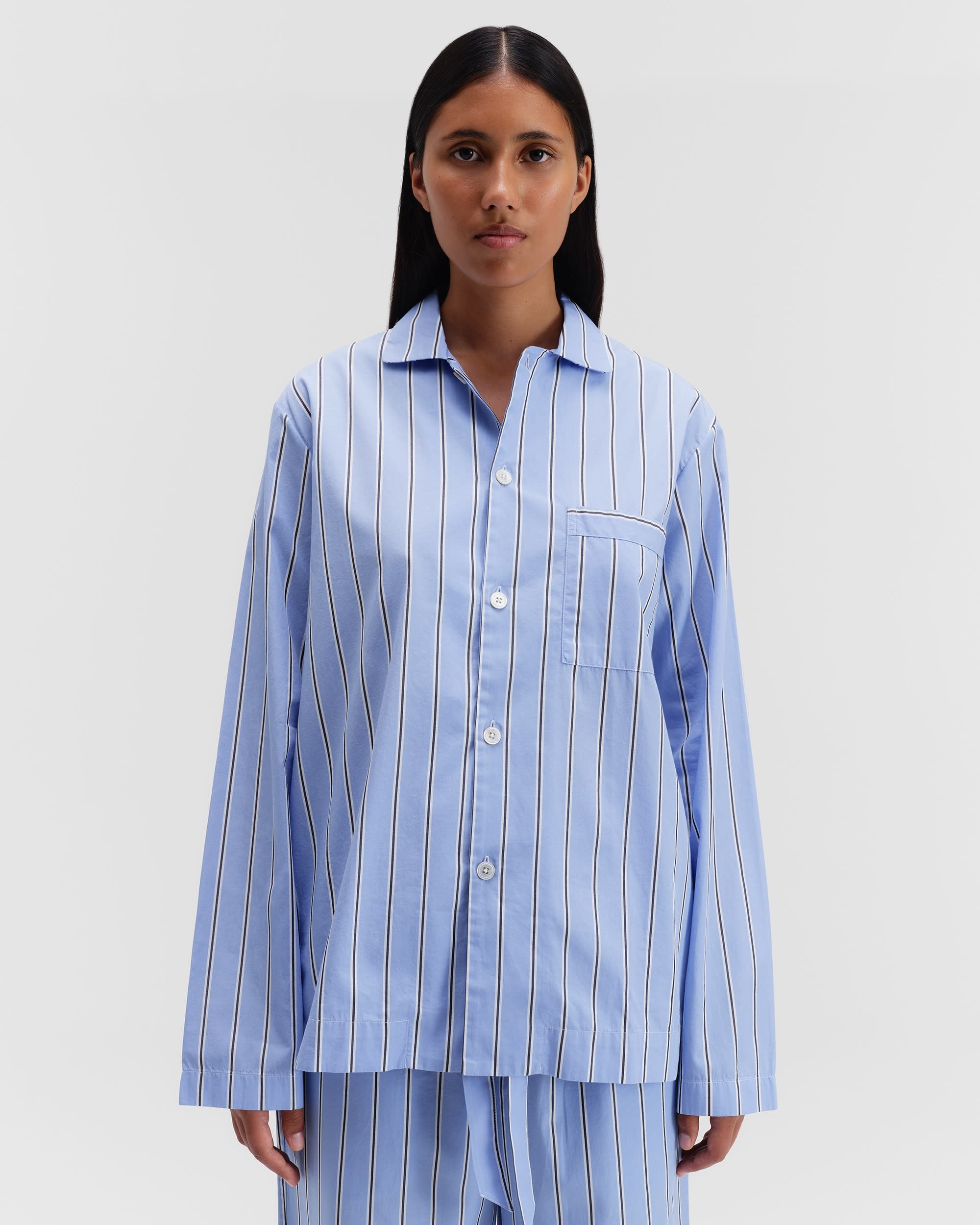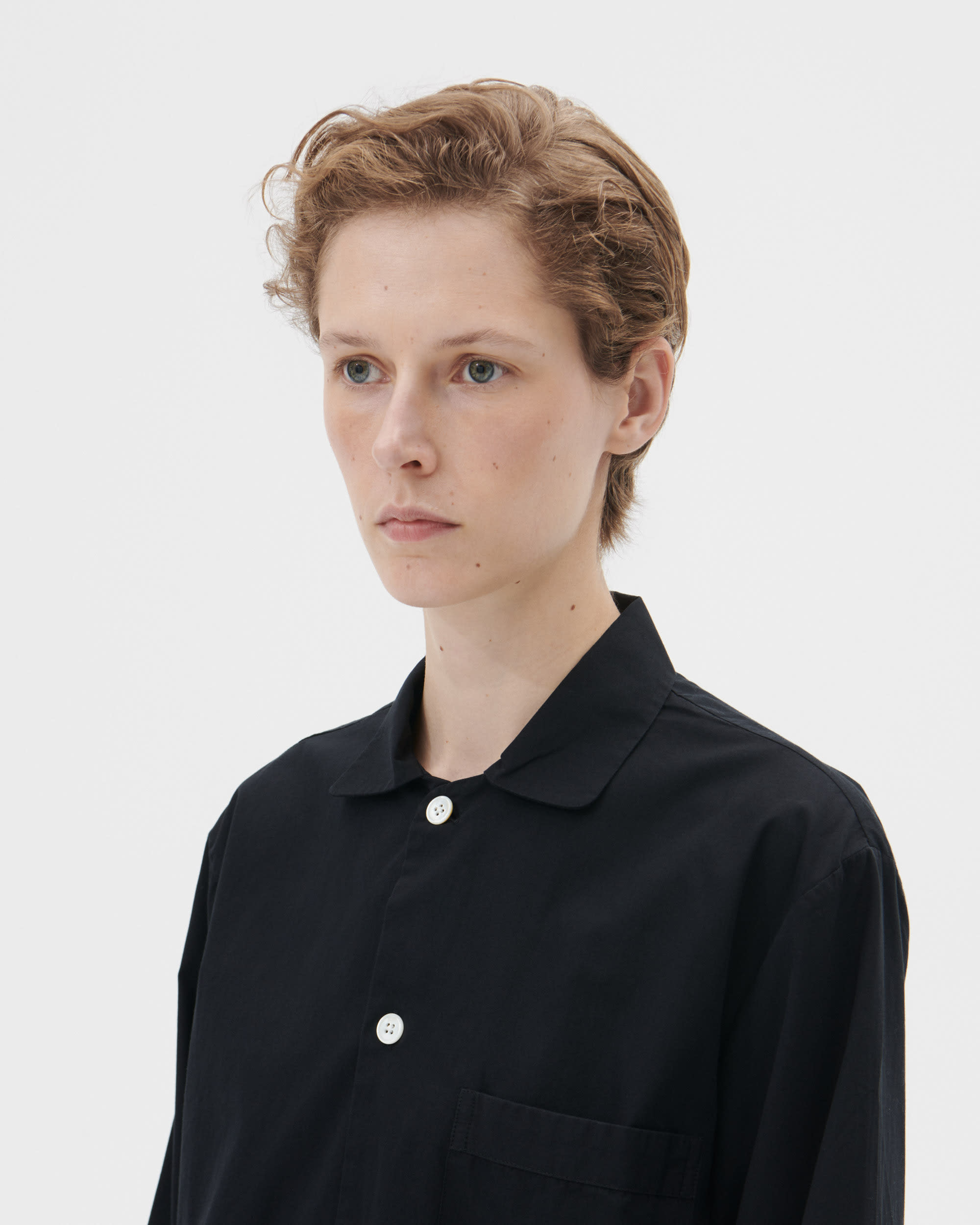 The poplin long-sleeved shirt is designed for moments of comfort throughout the day and night. The fabric is tightly woven for durability and a smooth, even finish, then lightly stonewashed for a soft hand feel. The extra-long yarns used prevent pilling and guarantee a deep, pure colour even after years of use.