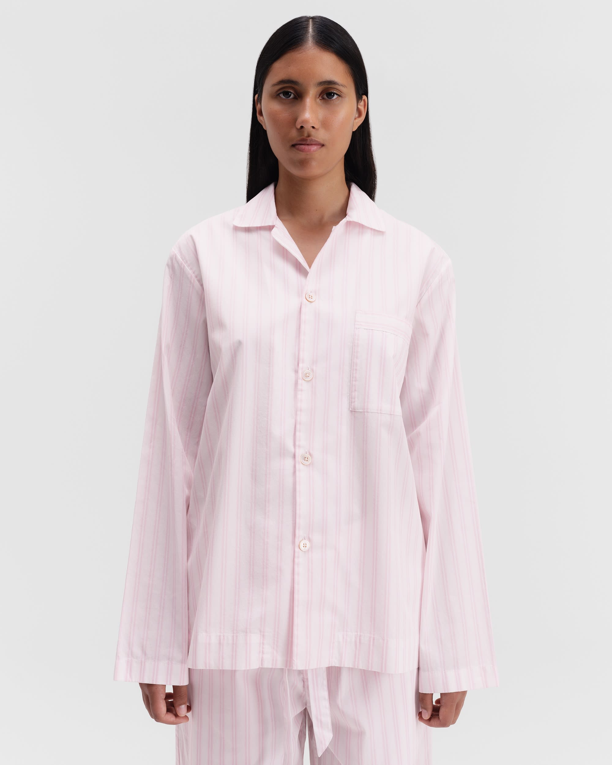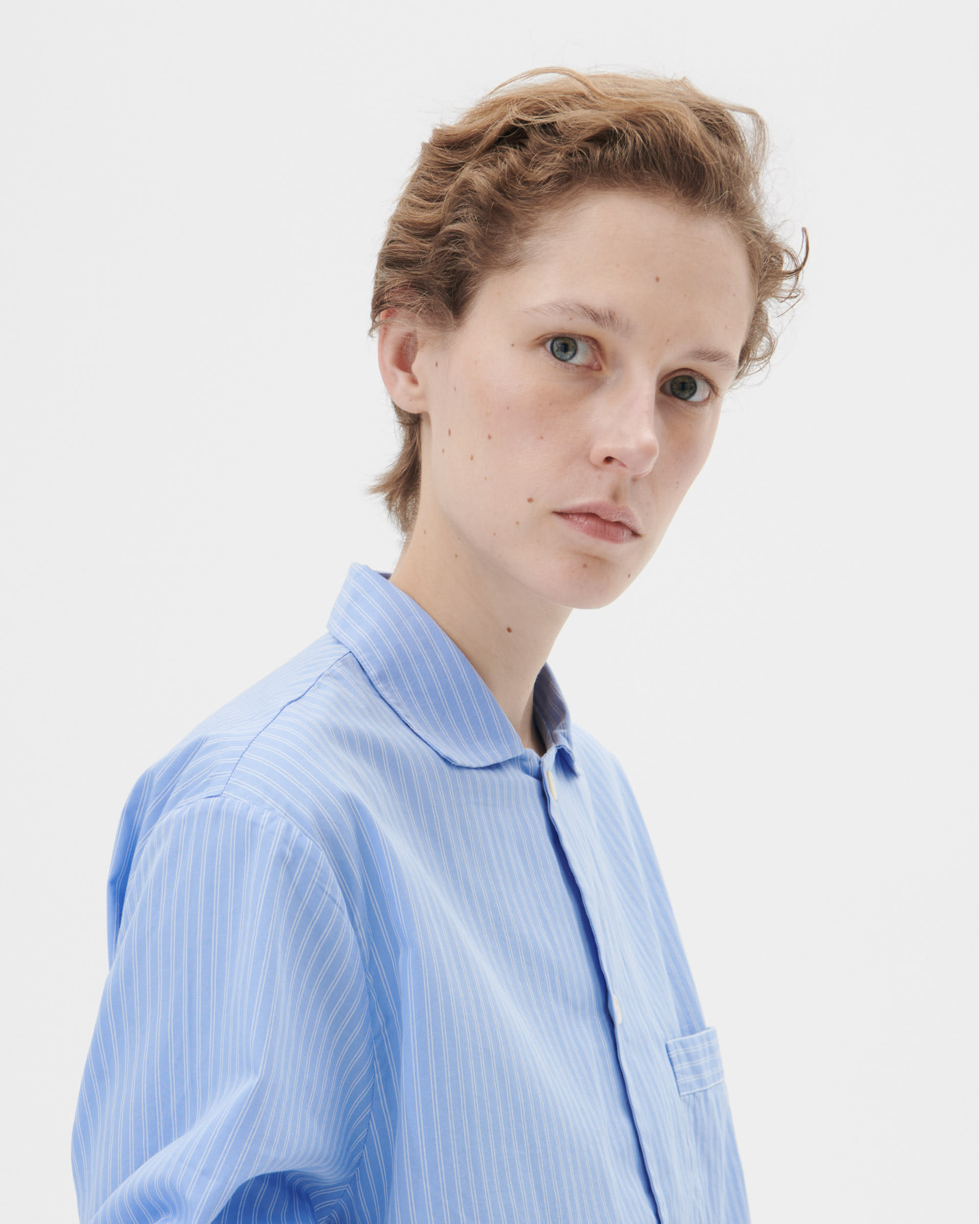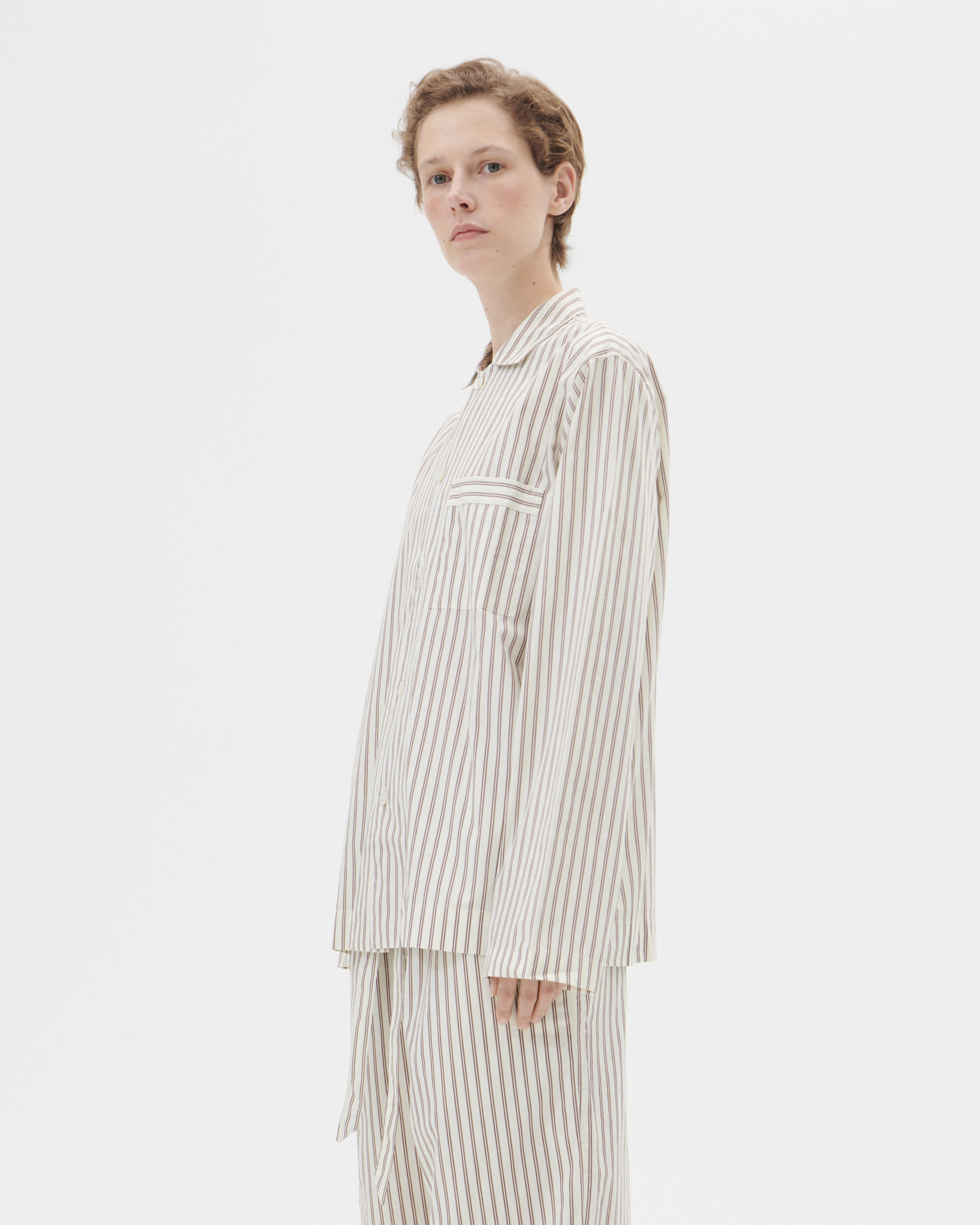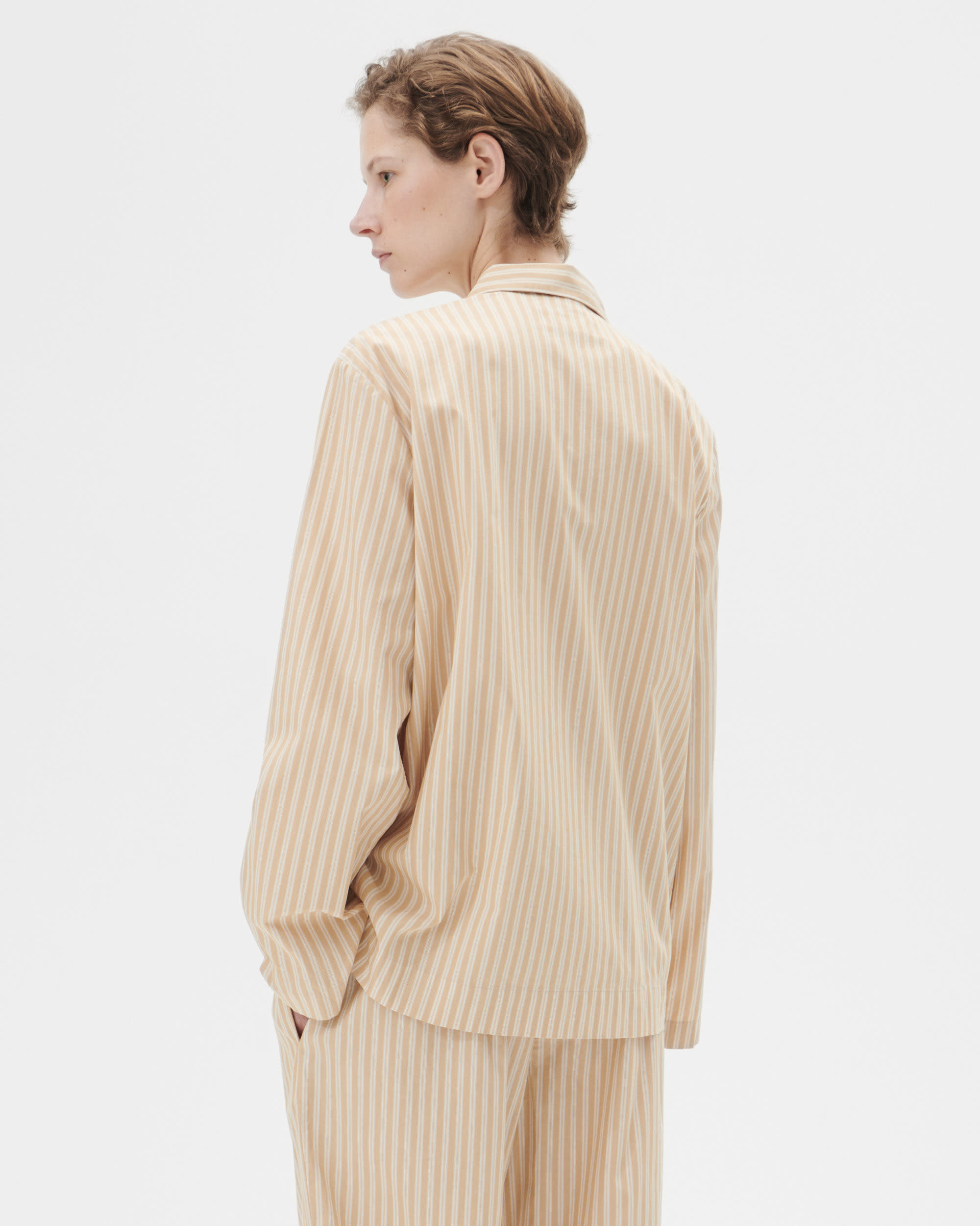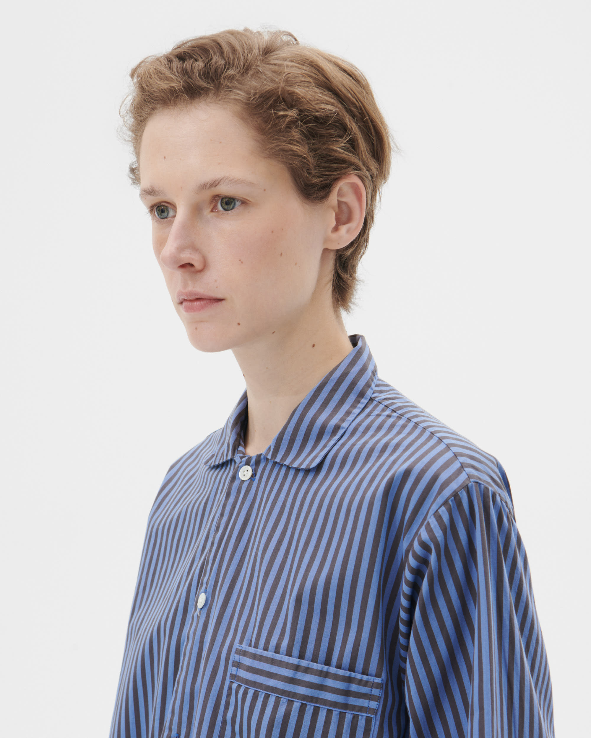 The poplin long-sleeved shirt is designed for moments of comfort throughout the day and night. The fabric is tightly woven for durability and a smooth, even finish, then lightly stonewashed for a soft hand feel. The extra-long yarns used prevent pilling and guarantee a deep, pure colour even after years of use.
