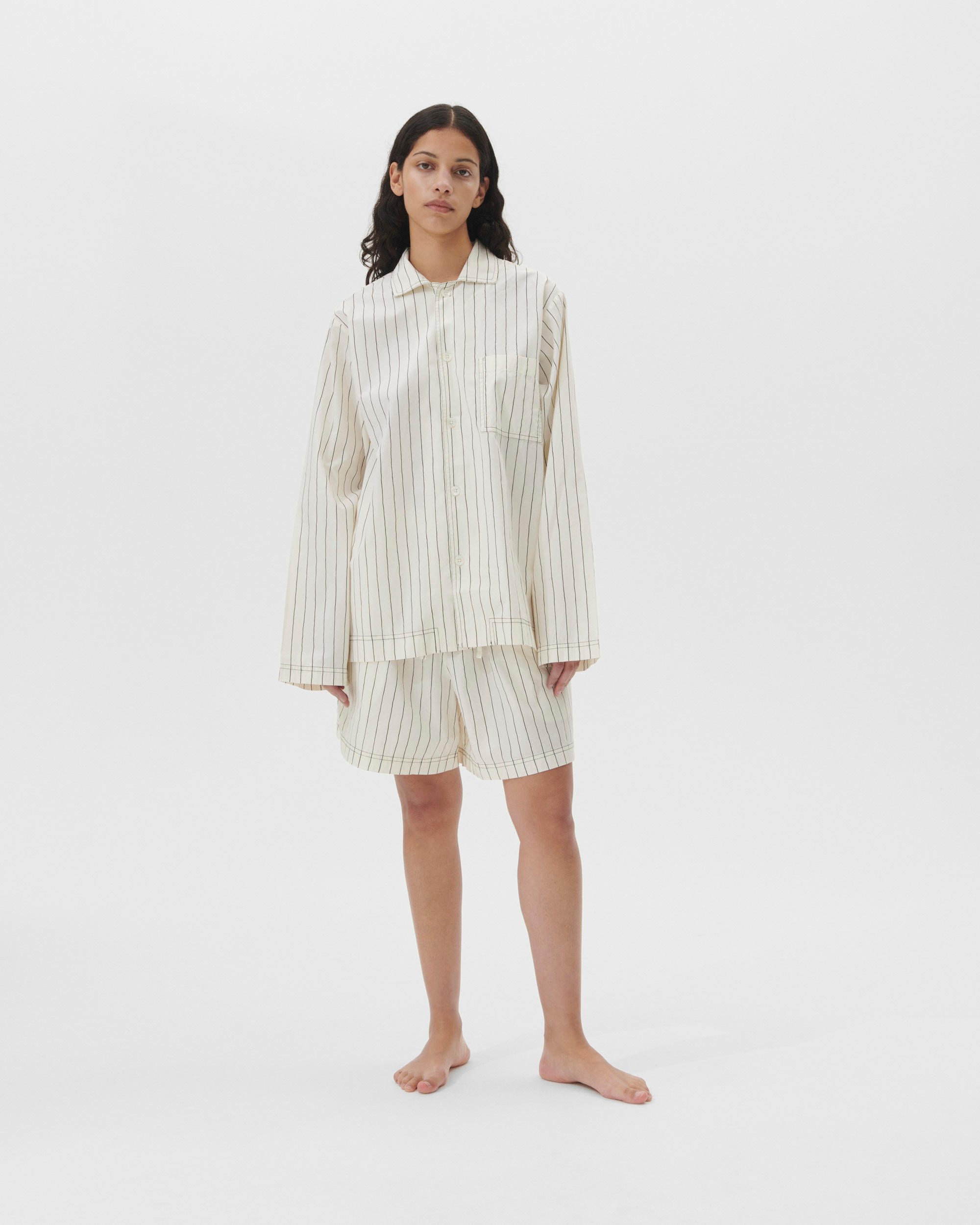 The poplin shorts are designed for moments of comfort throughout the day and night. The fabric is tightly woven for durability and a smooth, even finish, then lightly stonewashed for a soft hand feel. The extra-long yarns used prevent pilling and guarantee a deep, pure colour even after years of use.