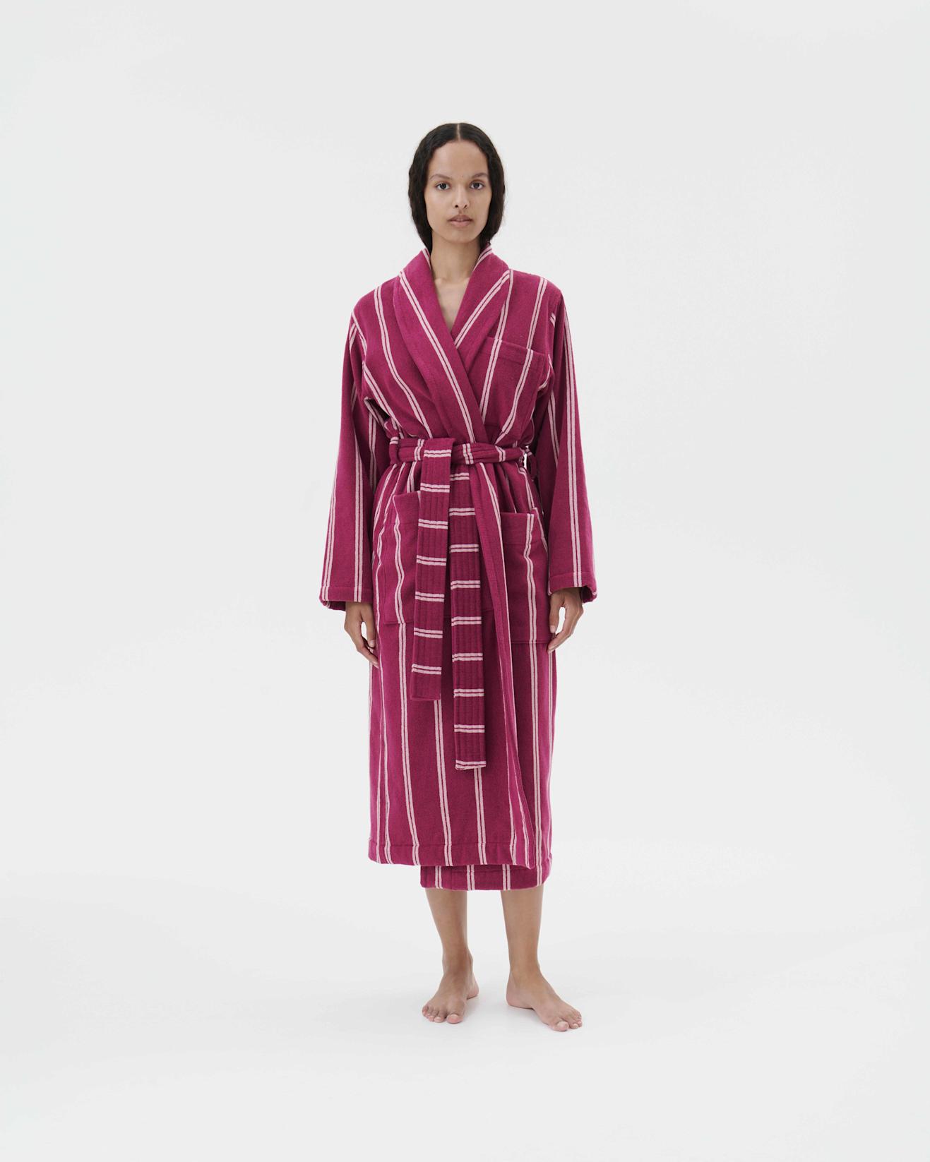 Terry bathrobes are made from soft and absorbent cotton with a spacious fit for comfort after bathing. The extra-long cotton yarns used are twisted to provide a superior touch, while the fabric’s dense weave ensures longevity.