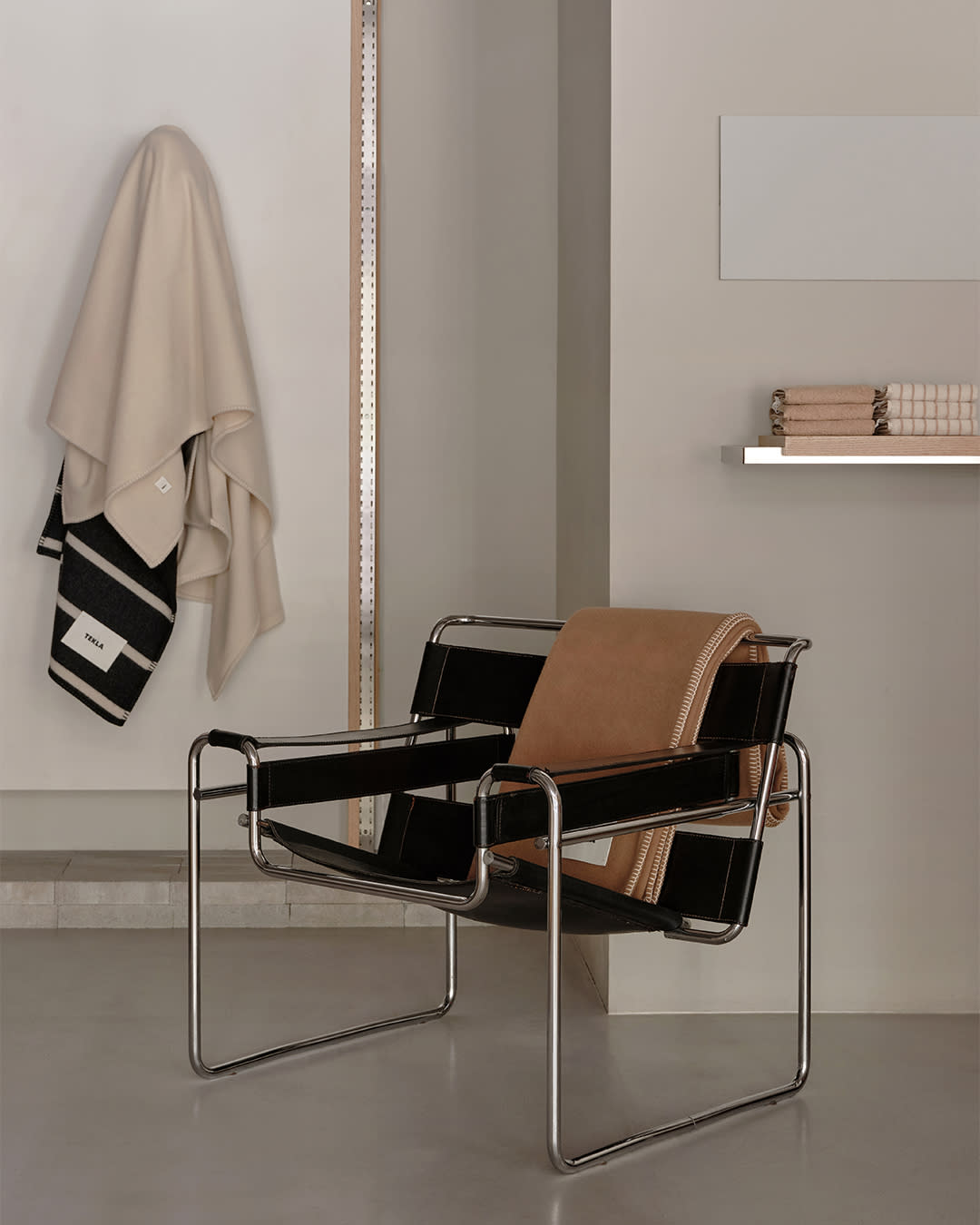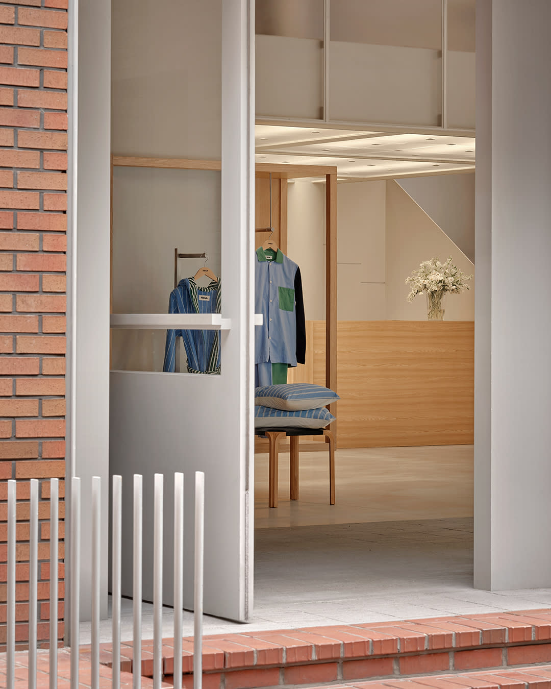 Tekla Seongsu embodies Tekla’s commitment to environments that inspire peace and comfort, drawing inspiration from Tekla Copenhagen. The space centres three podiums dedicated to the core collections of bathrobes and towels, sleepwear, and bedding, tempering the metals and concrete found throughout with Tekla’s gentle fabrications.