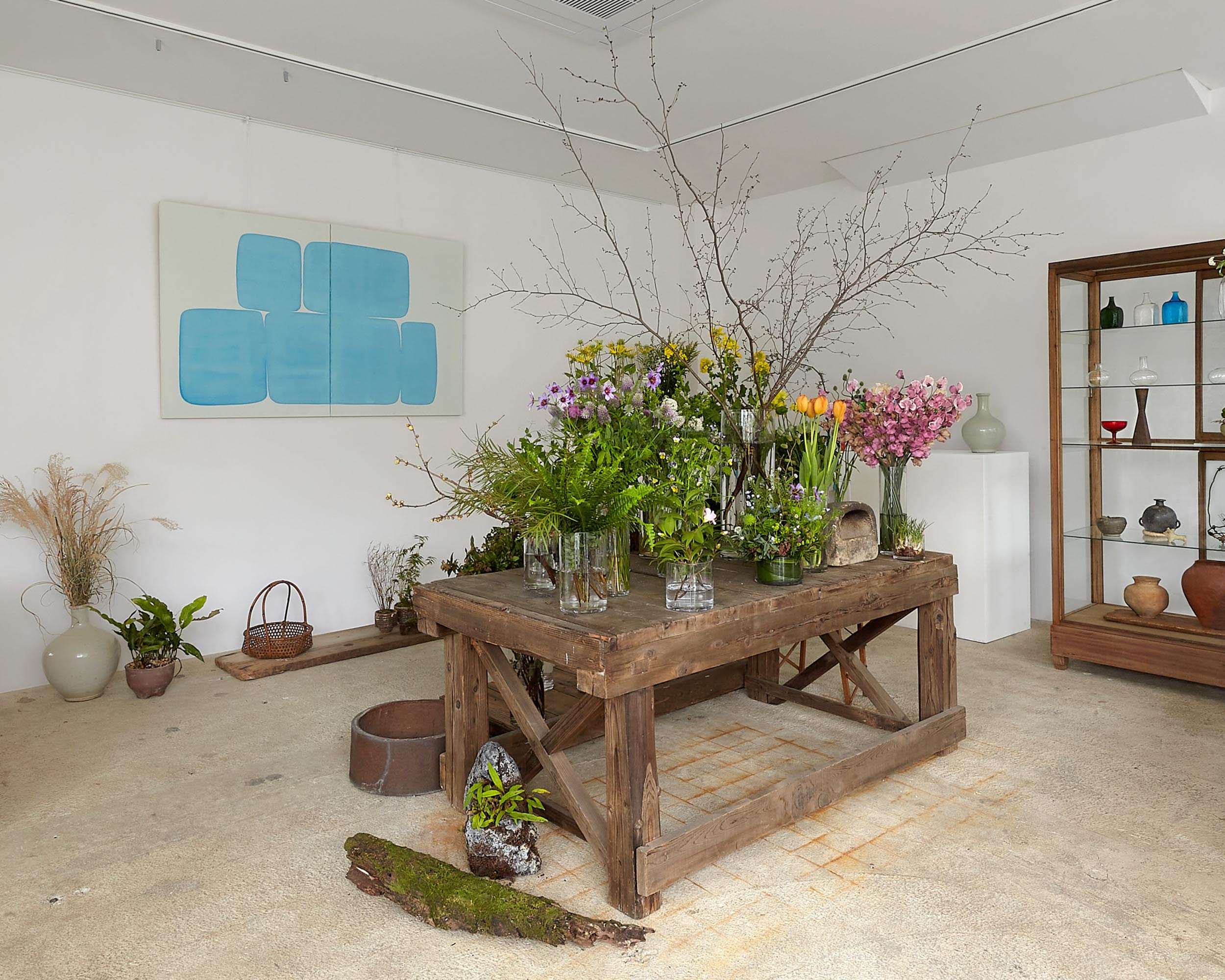 The success of the installation strengthened my and Muramatsu’s desire to combine art and flowers. We opened our shop in Kamakura, a famous coastal town in Eastern Japan, in January 2023. Behind it, there is a studio where Muramatsu paints.